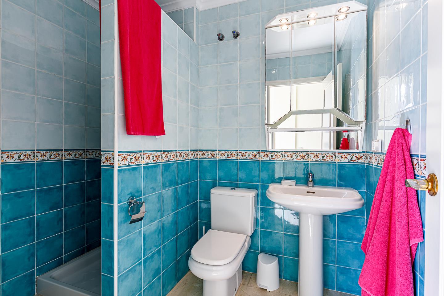 • Badezimmer mit Einzelwaschbecken, Dusche und WC