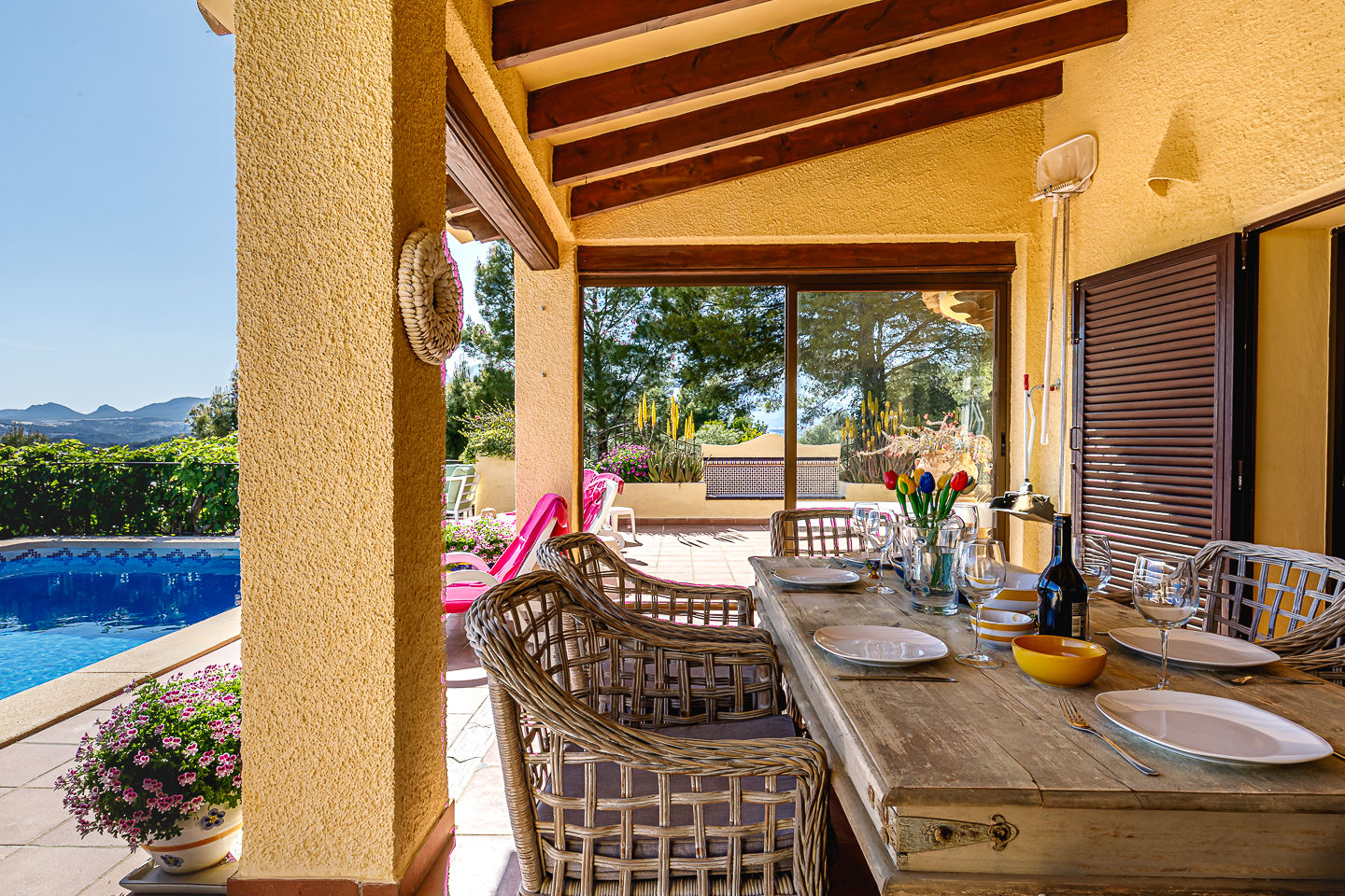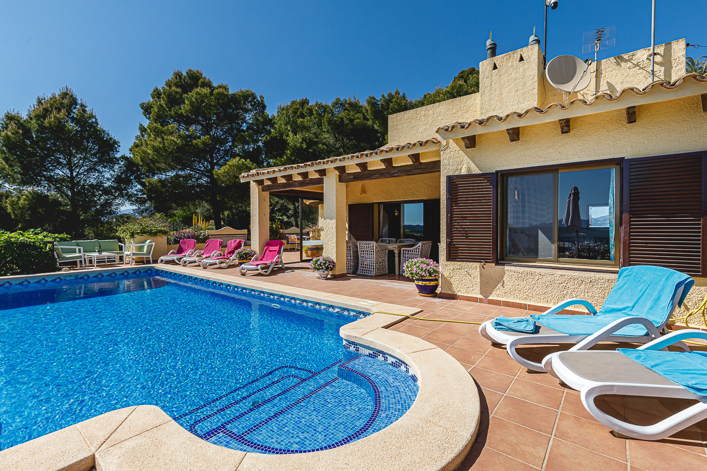 Das Haus verfügt über 3 Schlafzimmer und 2 Badezimmer. Die Unterkunft bietet viel Privatsphäre, einen Garten mit Bäumen, einen schönen beheizten Pool, wunderbare Ausblicke auf die Bucht sowie schöne Ausblicke auf das Meer, das Tal, die Landschaft und die Berge. Die Nähe zu Sportaktivitäten macht dies zu einem hervorragenden Ferienhaus, um Ihren Urlaub in Spanien mit Familie oder Freunden zu verbringen.