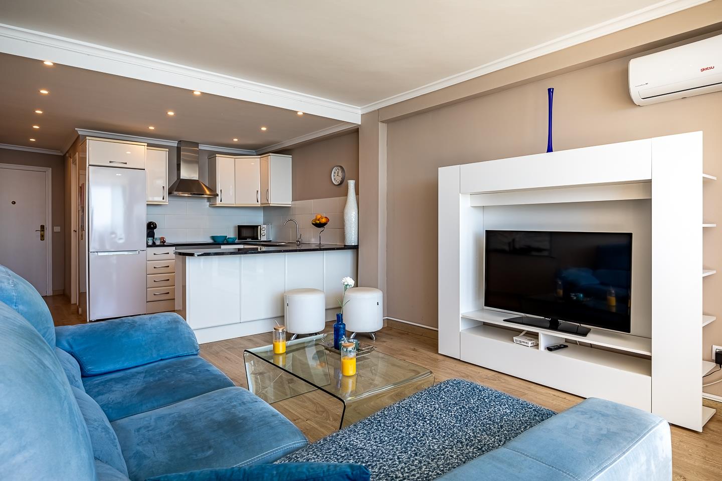 • Wohn-/Esszimmer mit Klimaanlage und Fernseher
