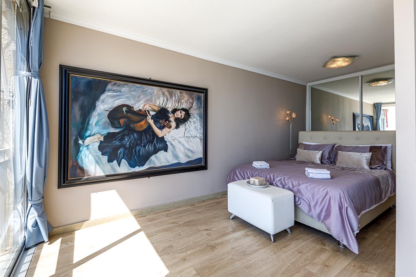 • Schlafzimmer mit Klimaanlage und Queensize-Bett (200 x 160 cm)