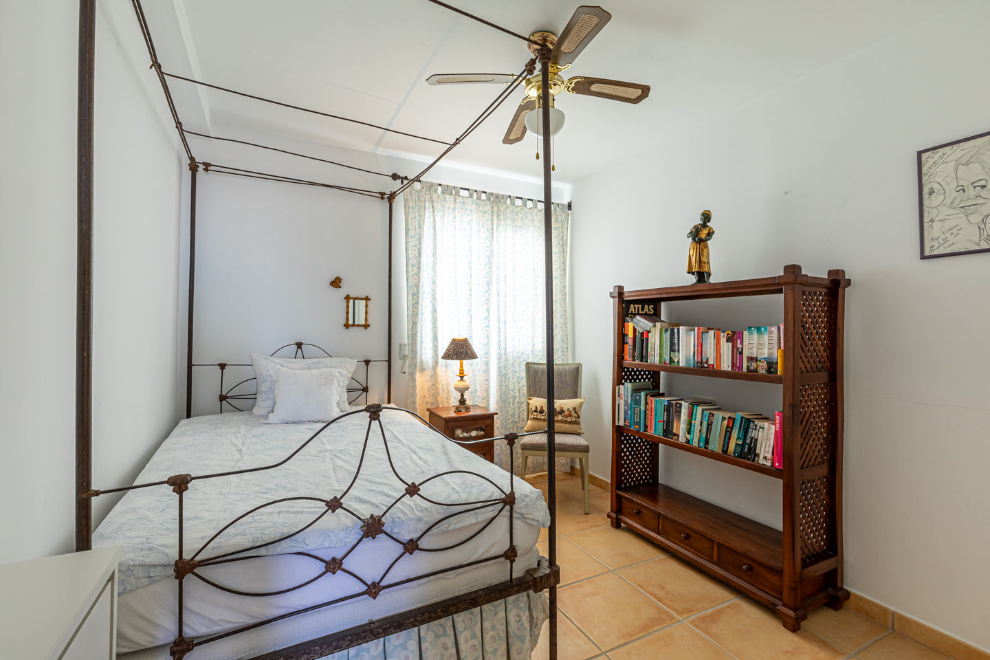 • Schlafzimmer mit Doppelbett und Ventilator