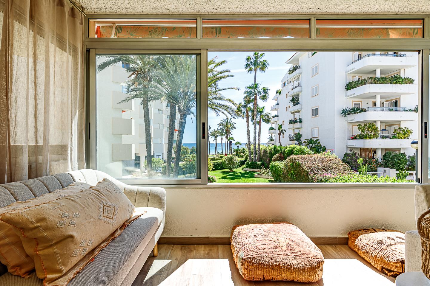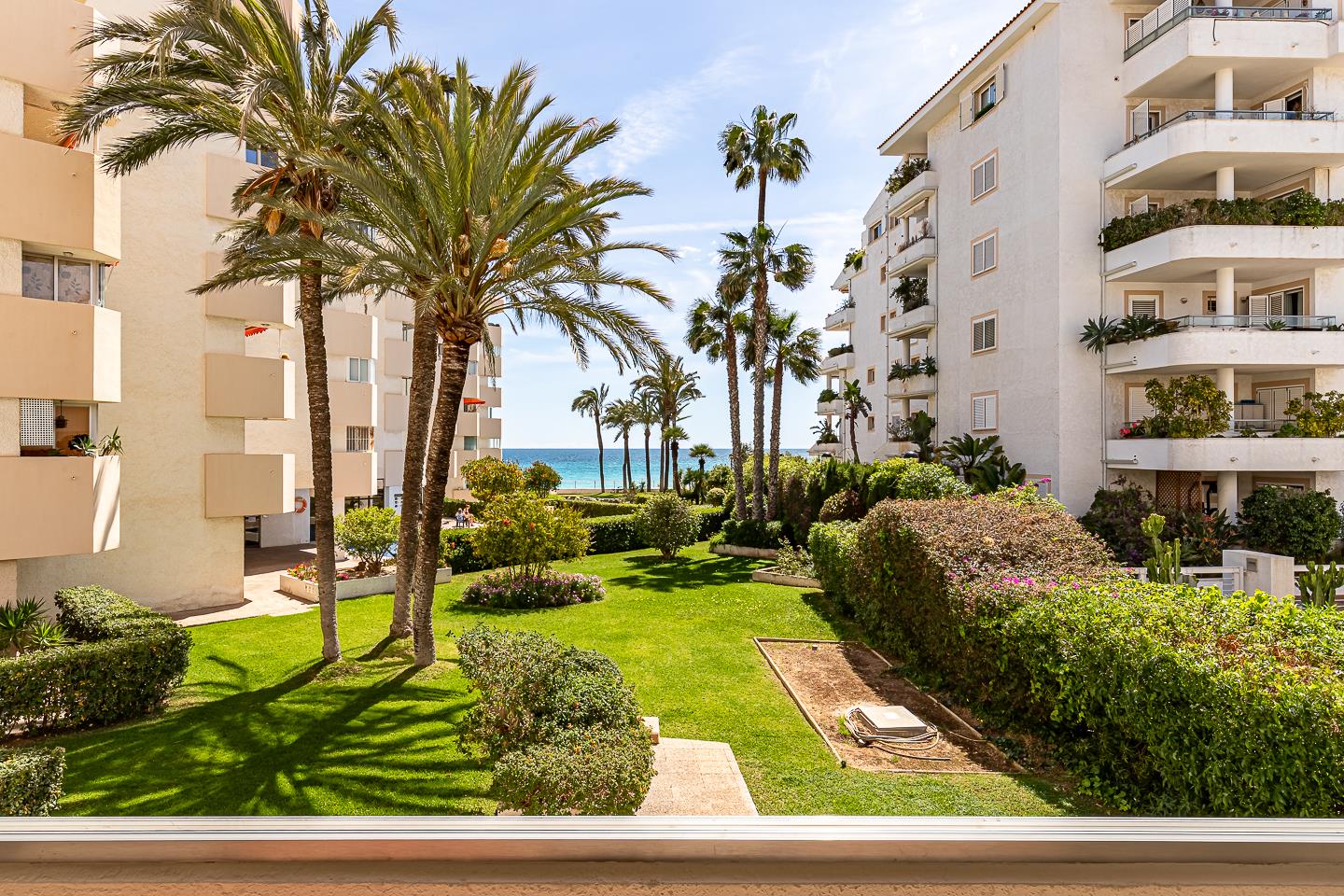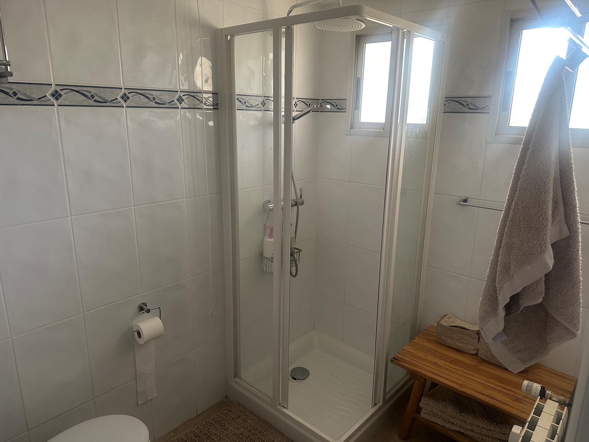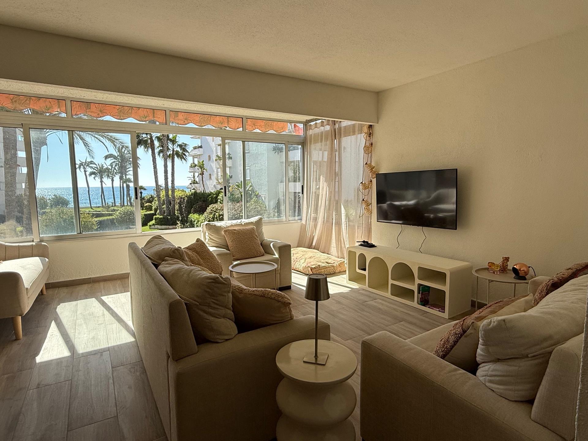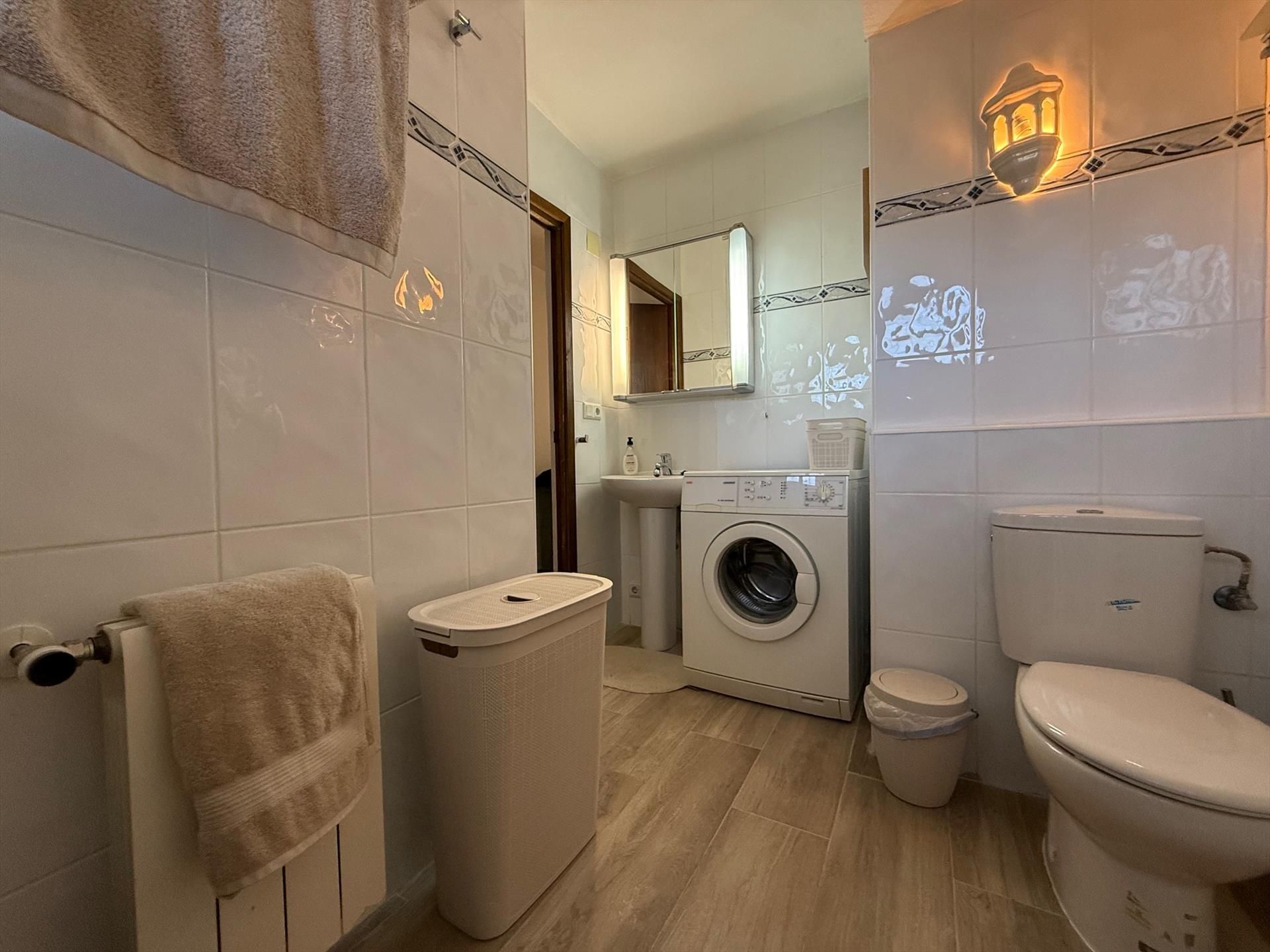 Das Apartment verfügt über 2 Schlafzimmer, 2 Badezimmer und 1 Gäste-WC. Die Unterkunft bietet Privatsphäre, einen wunderschönen Garten mit Rasen und Bäumen, einen gemeinschaftlichen Garten mit Rasen und Bäumen sowie einen herrlichen Blick auf das Meer, den Pool und den Garten.