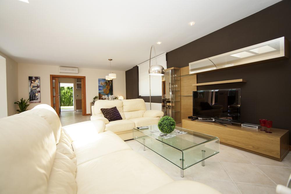 • Wohnzimmer mit Klimaanlage, Fernsehen und DVD-Player