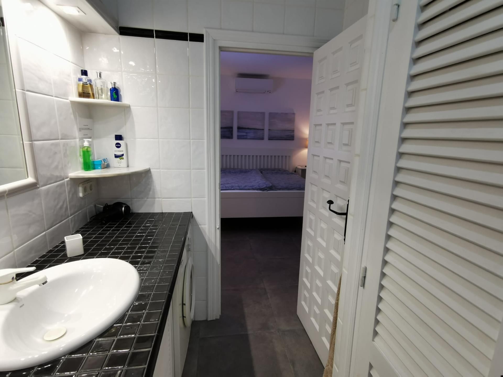 • Schlafzimmer mit Klimaanlage, Doppelbett und eigenem Badezimmer