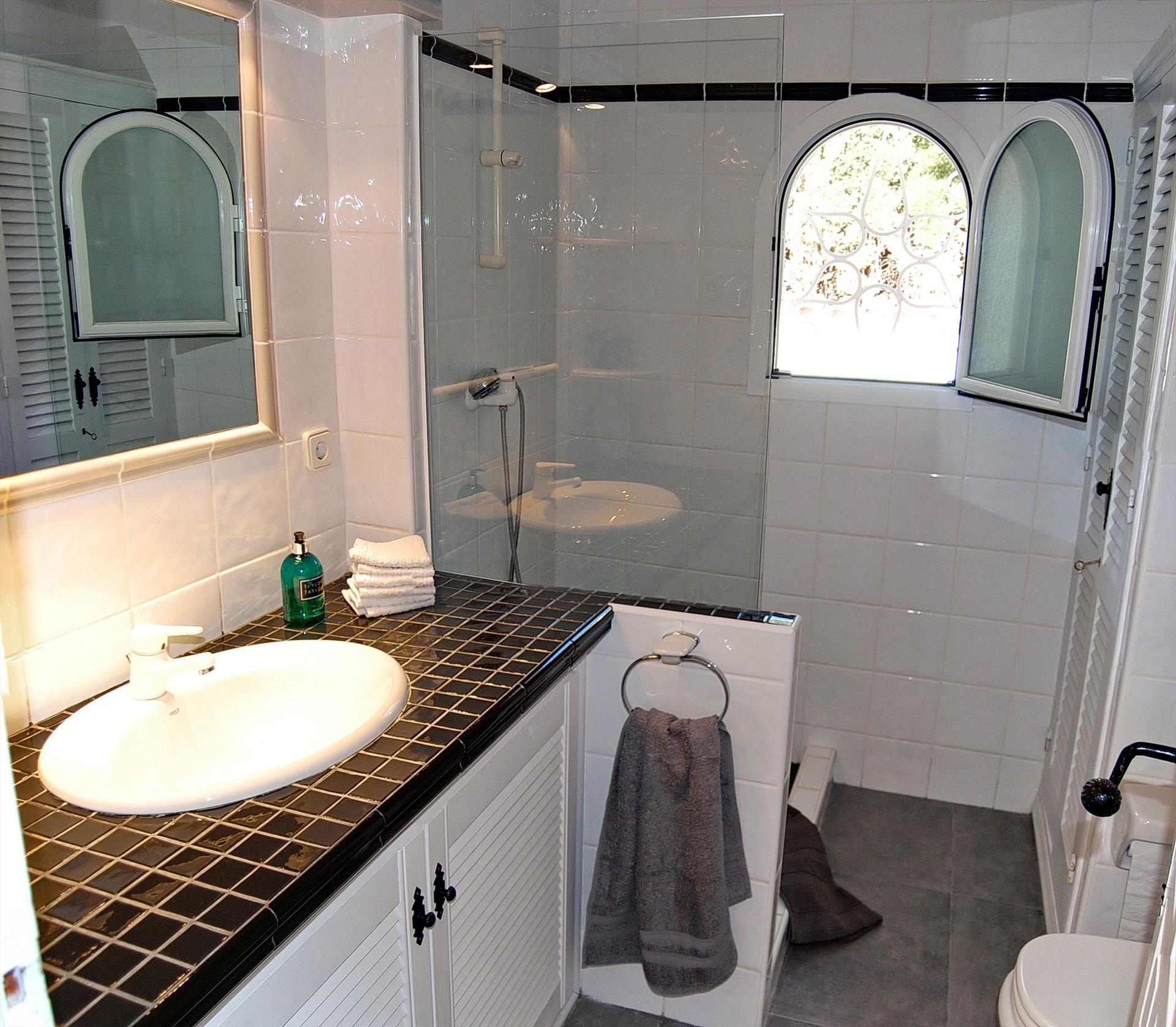 • Eigenes Badezimmer mit Einzelwaschbecken, Dusche und WC