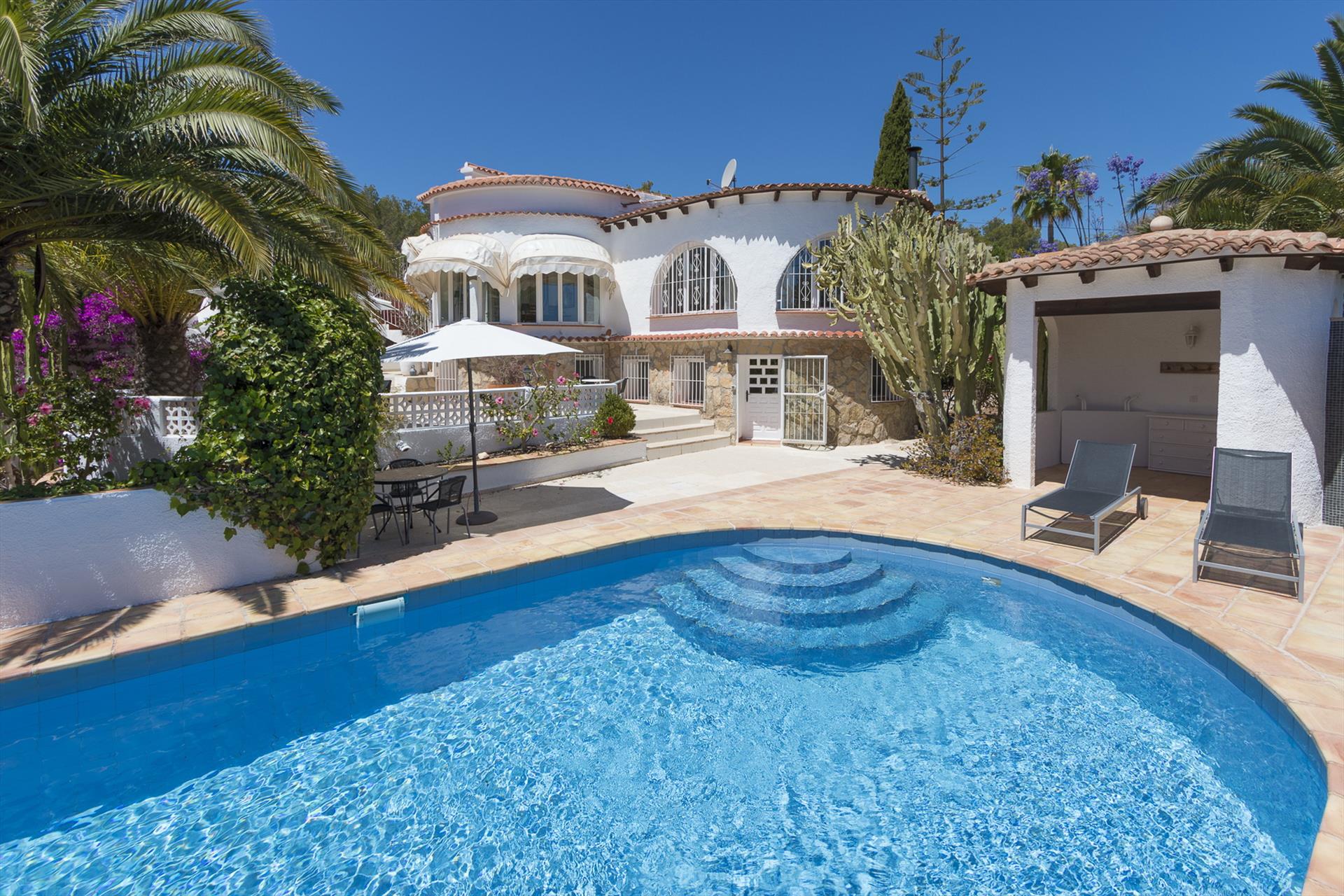 Schönes und romantisches Haus in Benissa, Costa Blanca, Spanien, mit privatem Pool für 6 Personen. Das Haus befindet sich in einer küstennahen, hügeligen Wohngegend, 3 km vom Strand Cala Advocat und 5 km von Calpe und Moraira entfernt.