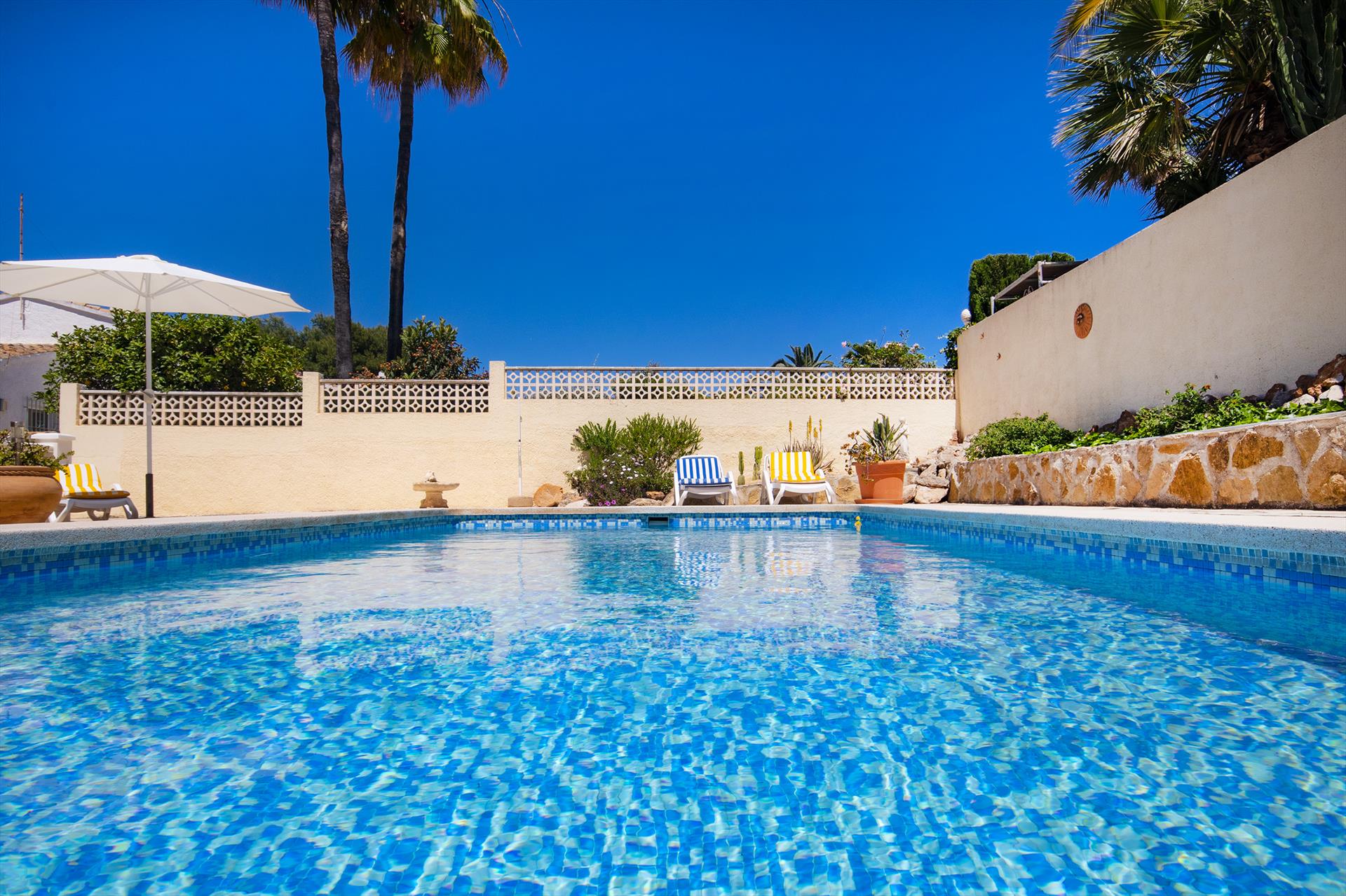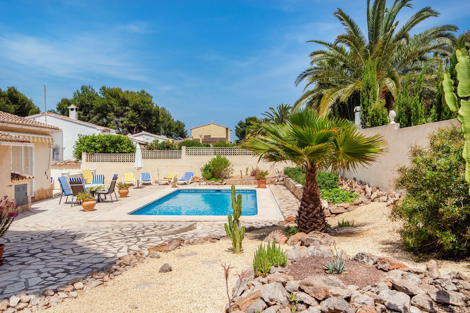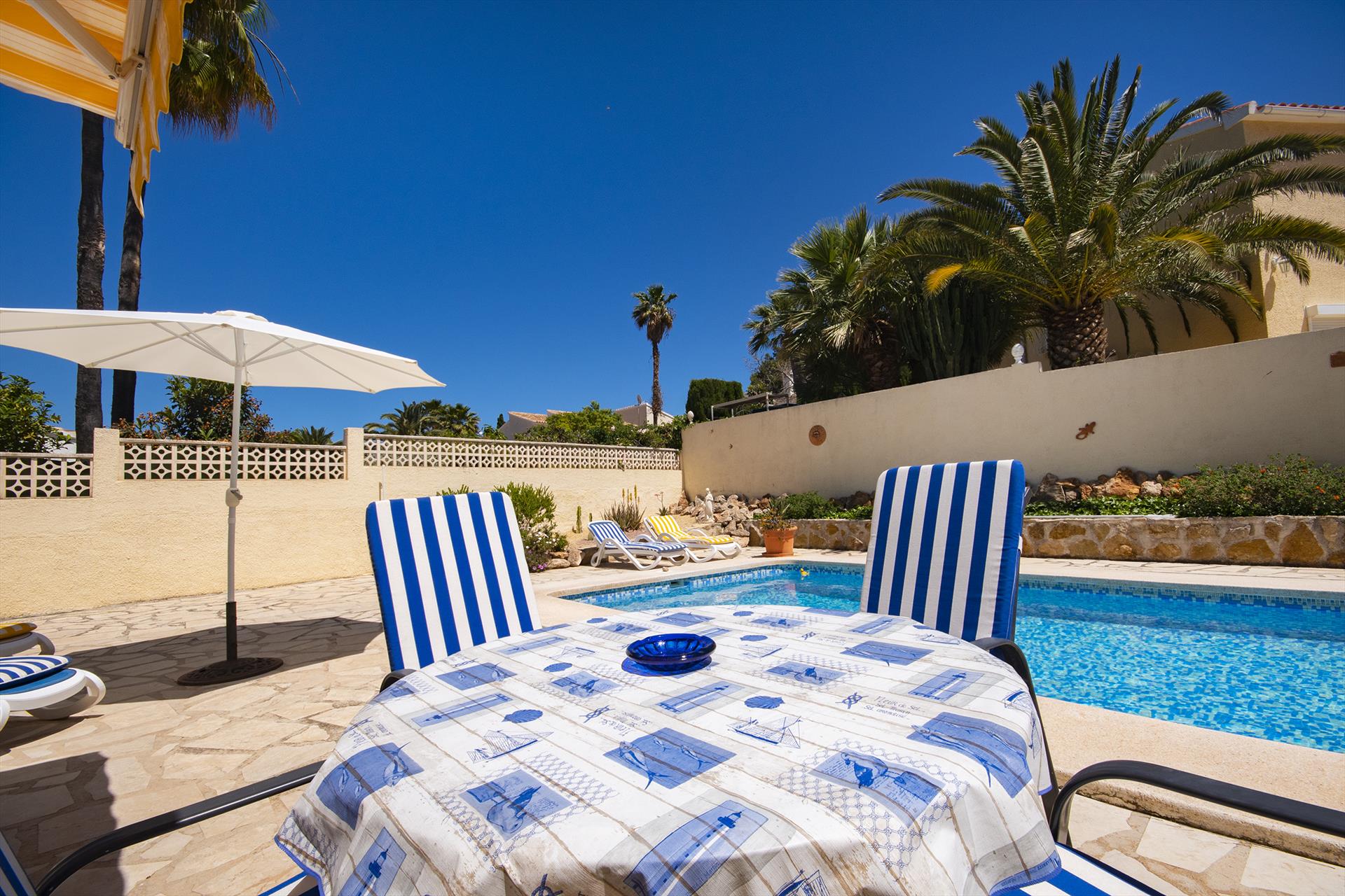 Wunderschöne und komfortable Villa mit privatem Pool in Benissa, Costa Blanca, Spanien für 4 Personen. Das Haus befindet sich in einer Wohngegend am Strand, 3 km vom Strand La Fustera und 5 km von Calpe entfernt.