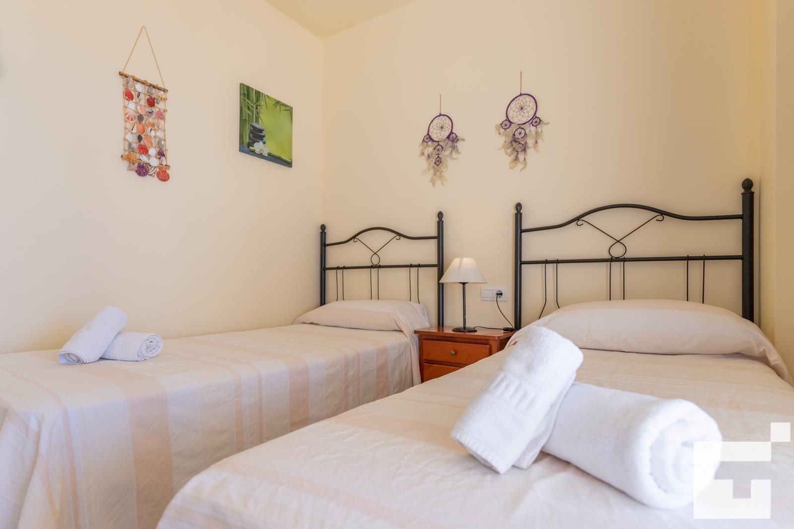Das Apartment verfügt über 2 Schlafzimmer und 2 Badezimmer. Die Unterkunft bietet Privatsphäre, einen schönen Rasen mit Bäumen, einen gemeinschaftlichen Garten mit Rasen und Bäumen sowie wunderbare Ausblicke auf die Bucht, den Strand, das Meer, den Pool und den Garten. Der Komfort und die Nähe zum Strand, Einkaufsmöglichkeiten und Ausgehmöglichkeiten machen dieses Apartment zu einem hervorragenden Ort, um Ihren Urlaub in Spanien mit Familie oder Freunden zu verbringen.