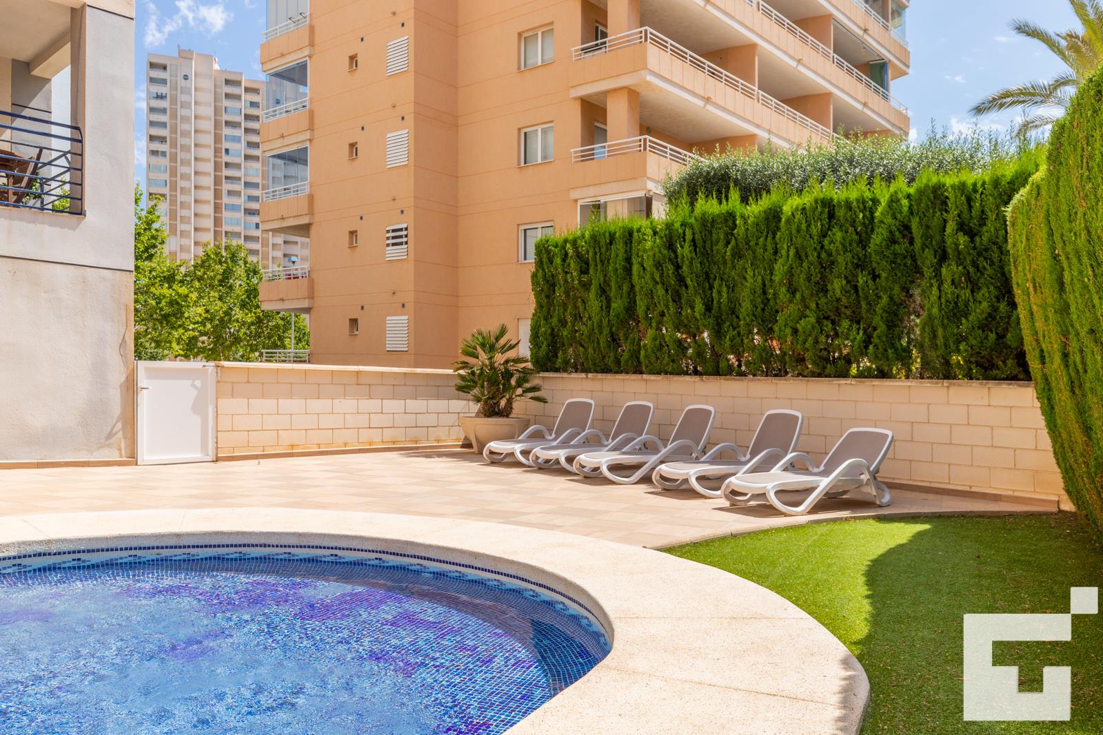 Schönes und komfortables Apartment in Calpe, Costa Blanca, Spanien, mit Gemeinschaftspool für 6 Personen. Das Apartment befindet sich in einem Wohngebiet nahe dem Strand, in der Nähe von Restaurants, Bars und Supermärkten, und nur 200 m vom Levante-Strand entfernt.