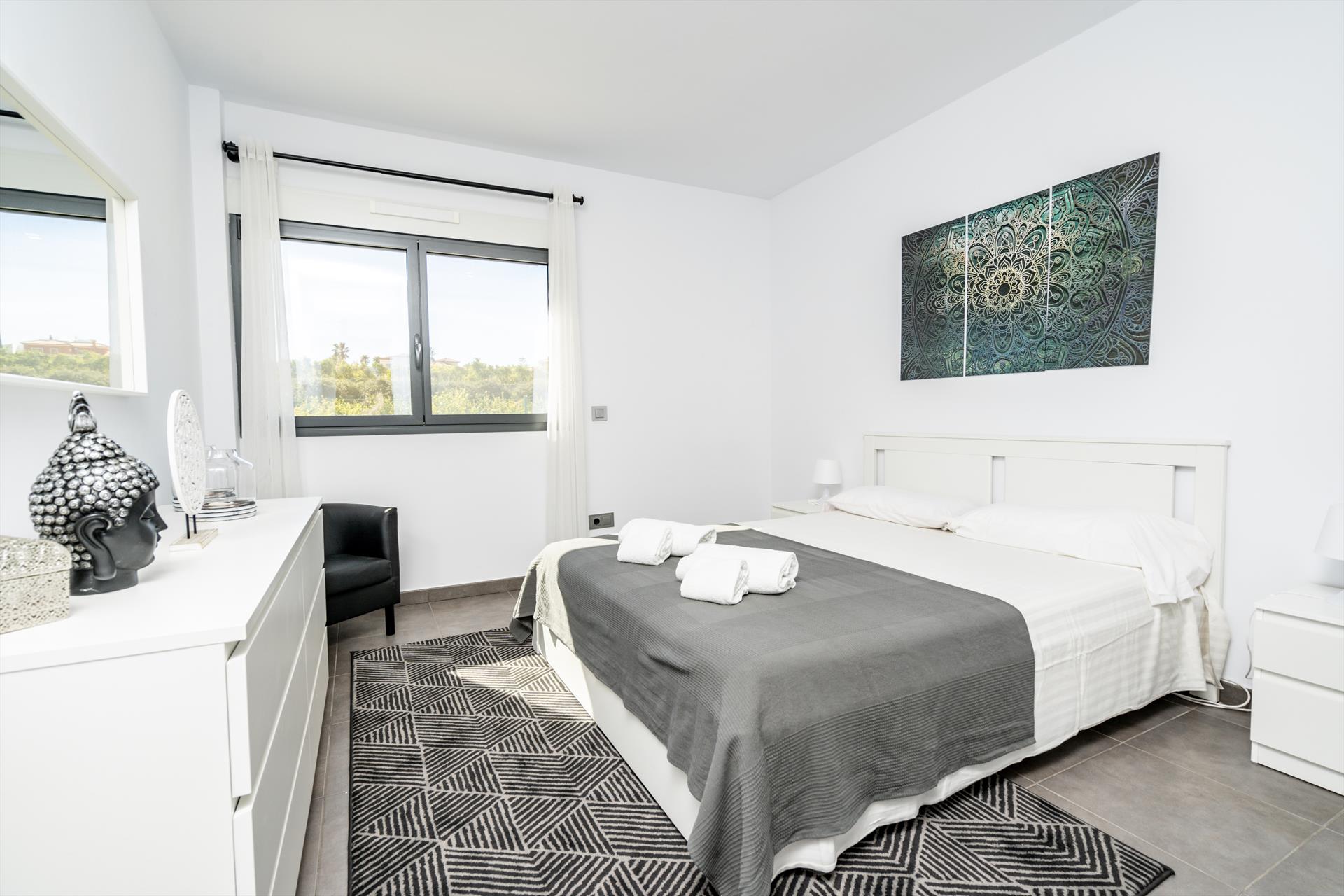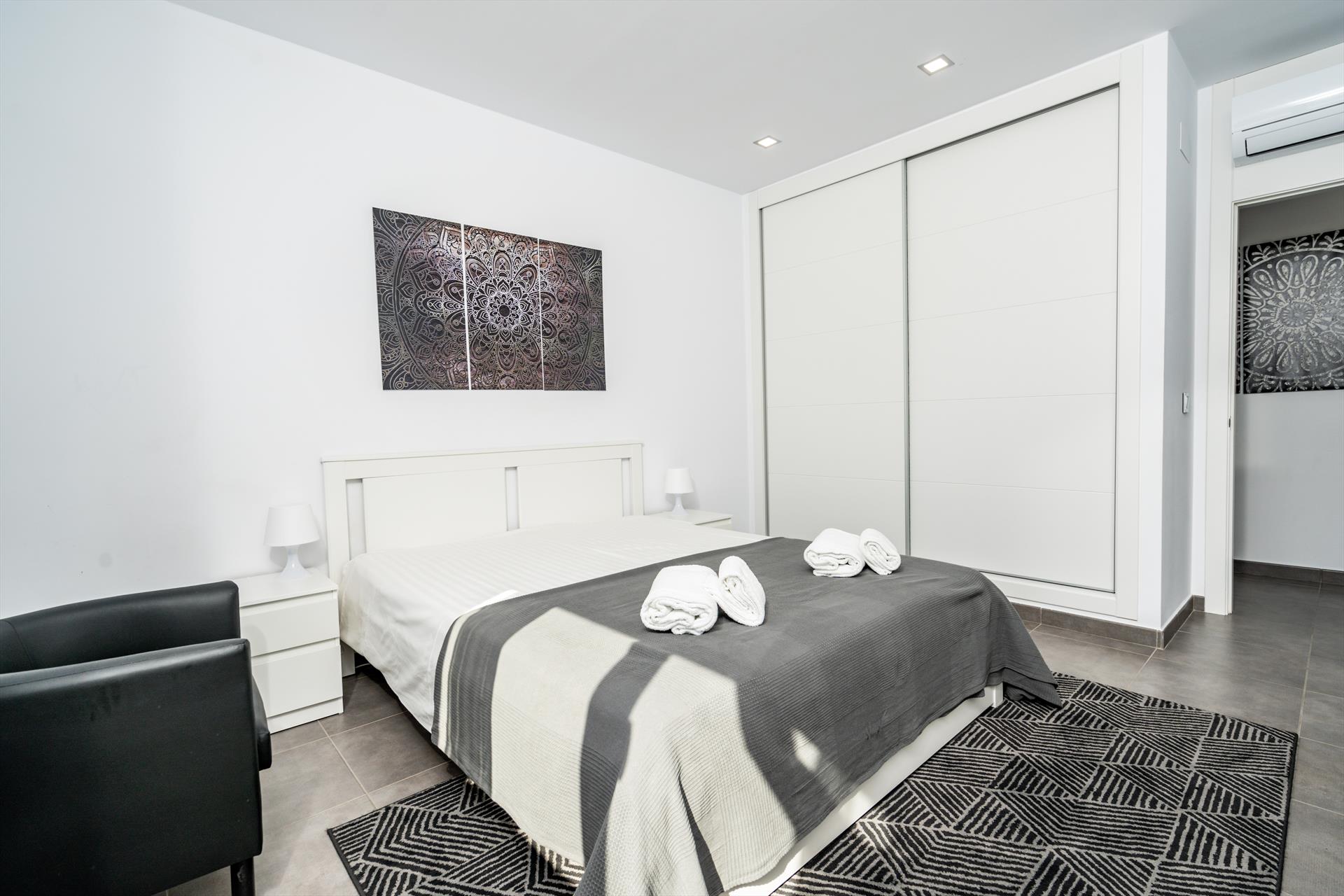 • Schlafzimmer mit Klimaanlage, Doppelbett und eigenem Badezimmer