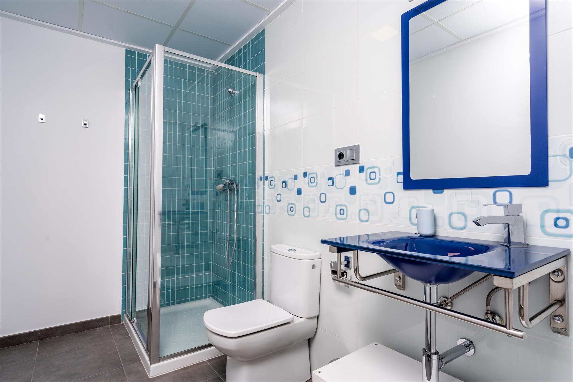 • Eigenes Badezimmer mit Waschtisch, Dusche und WC