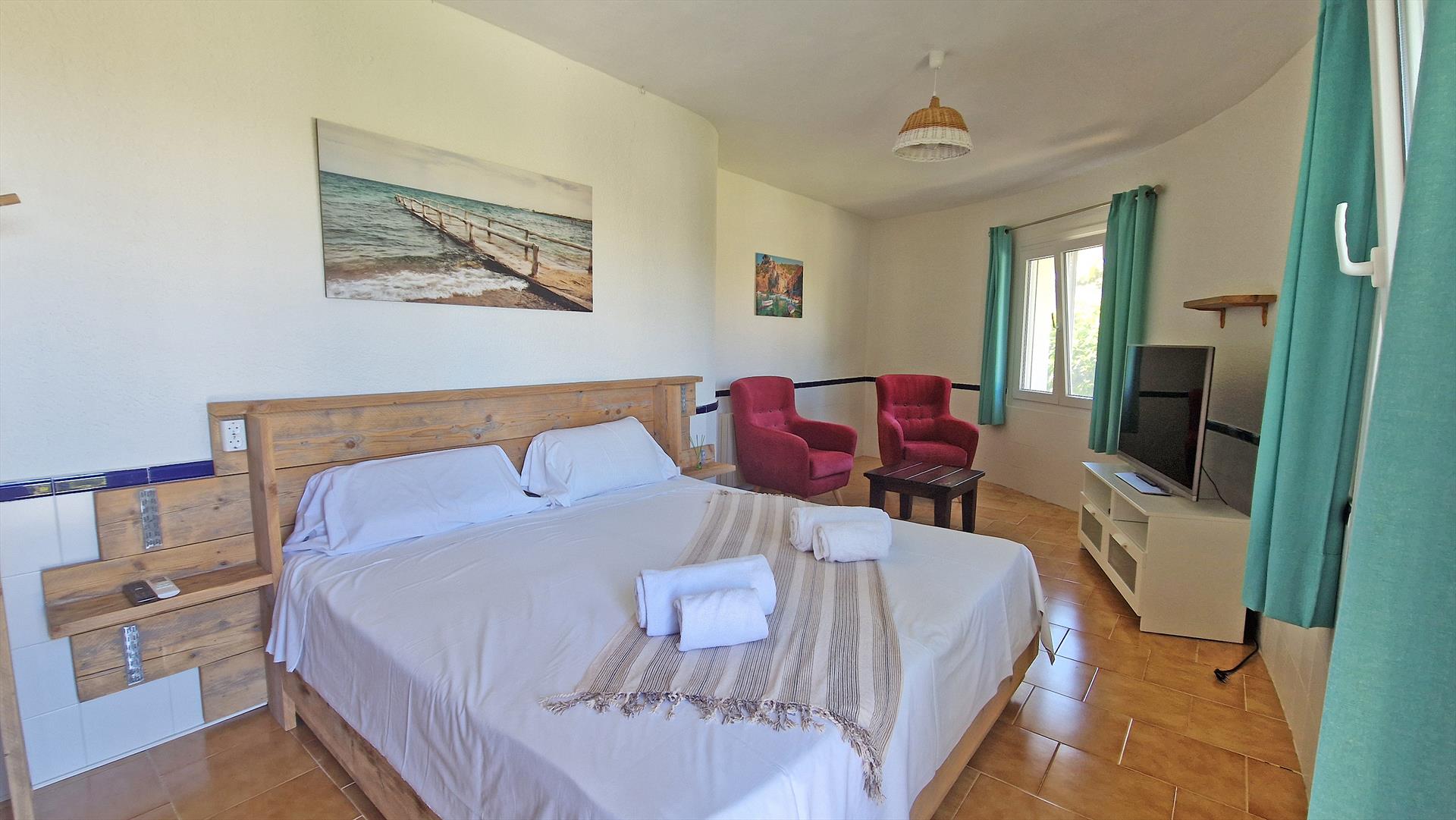 • Klimatisiertes Schlafzimmer mit Kingsize-Bett (Maße 190 x 180 cm) und en-suite Badezimmer