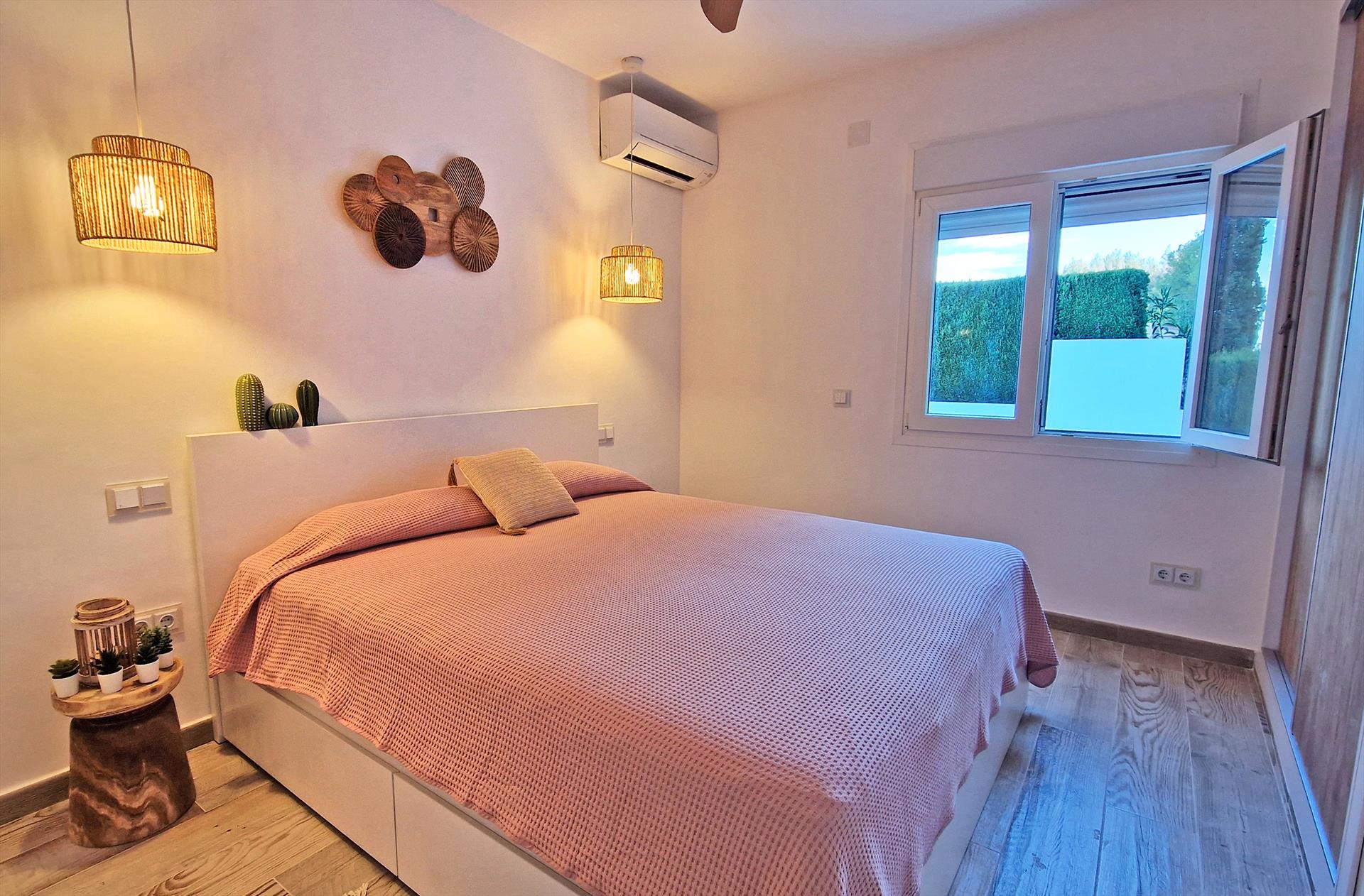 • Schlafzimmer mit Klimaanlage, Doppelbett und Badezimmer en-suite