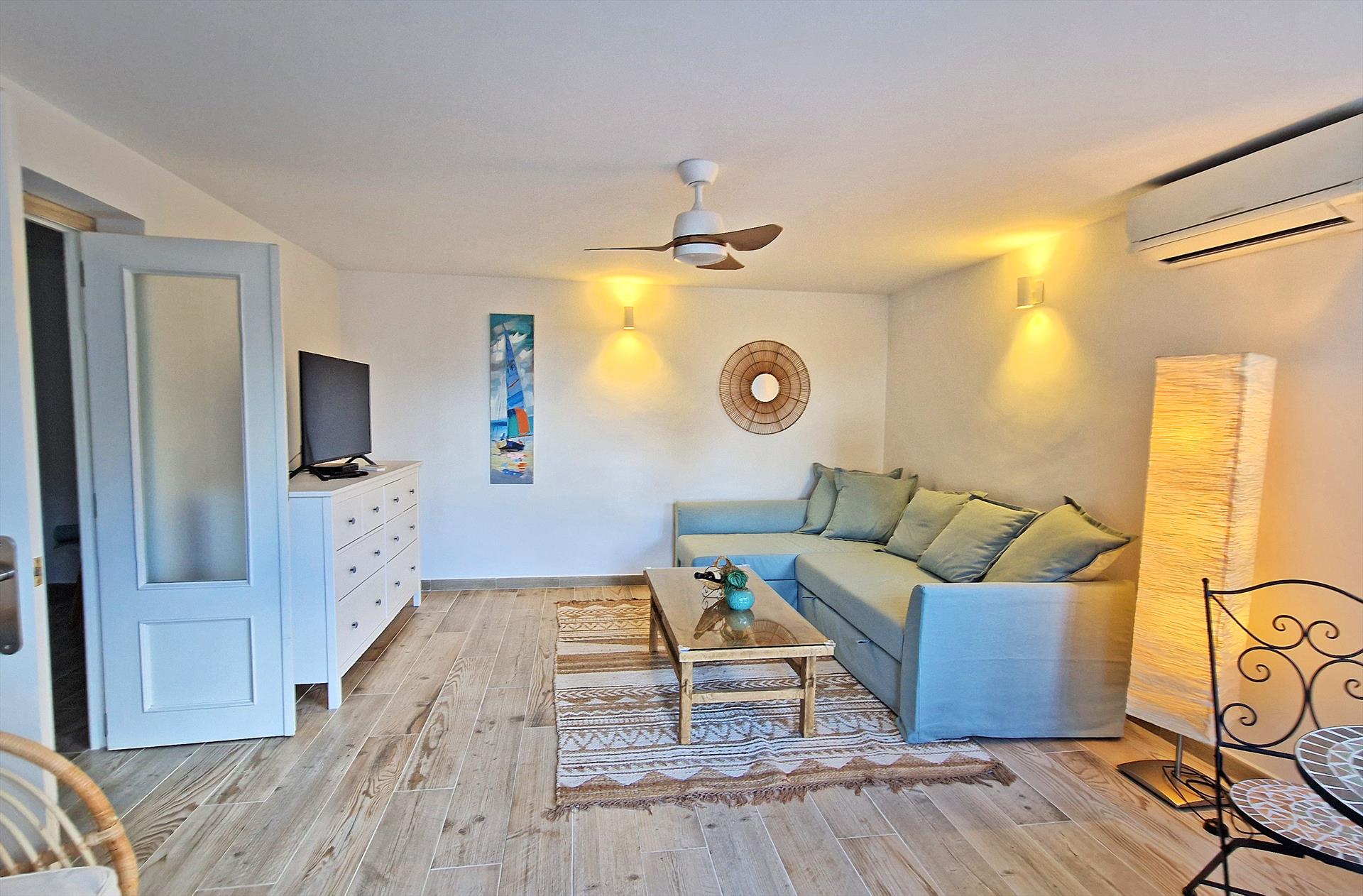 • Wohn-/Esszimmer mit Klimaanlage und Fernseher
