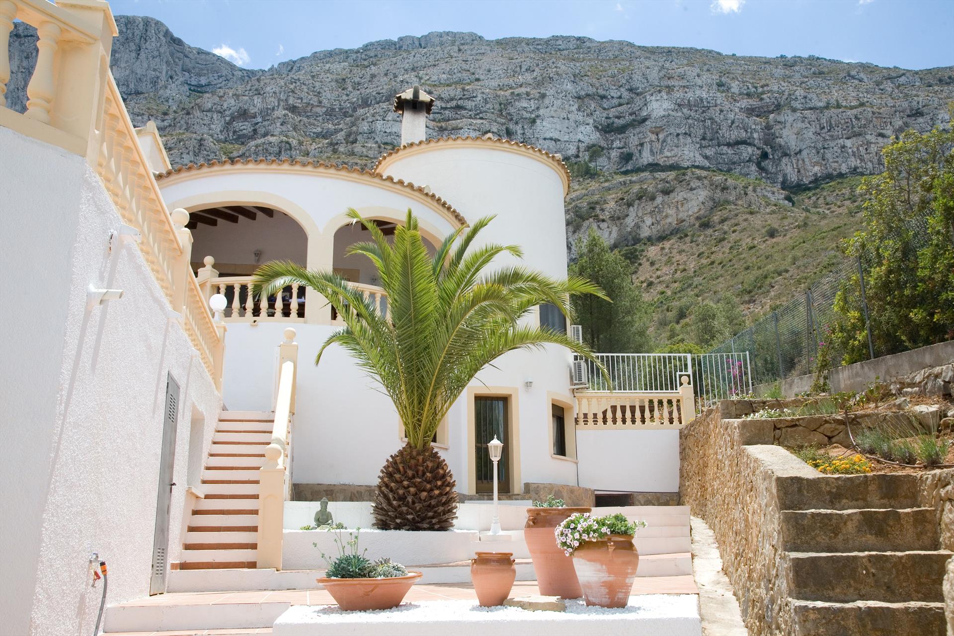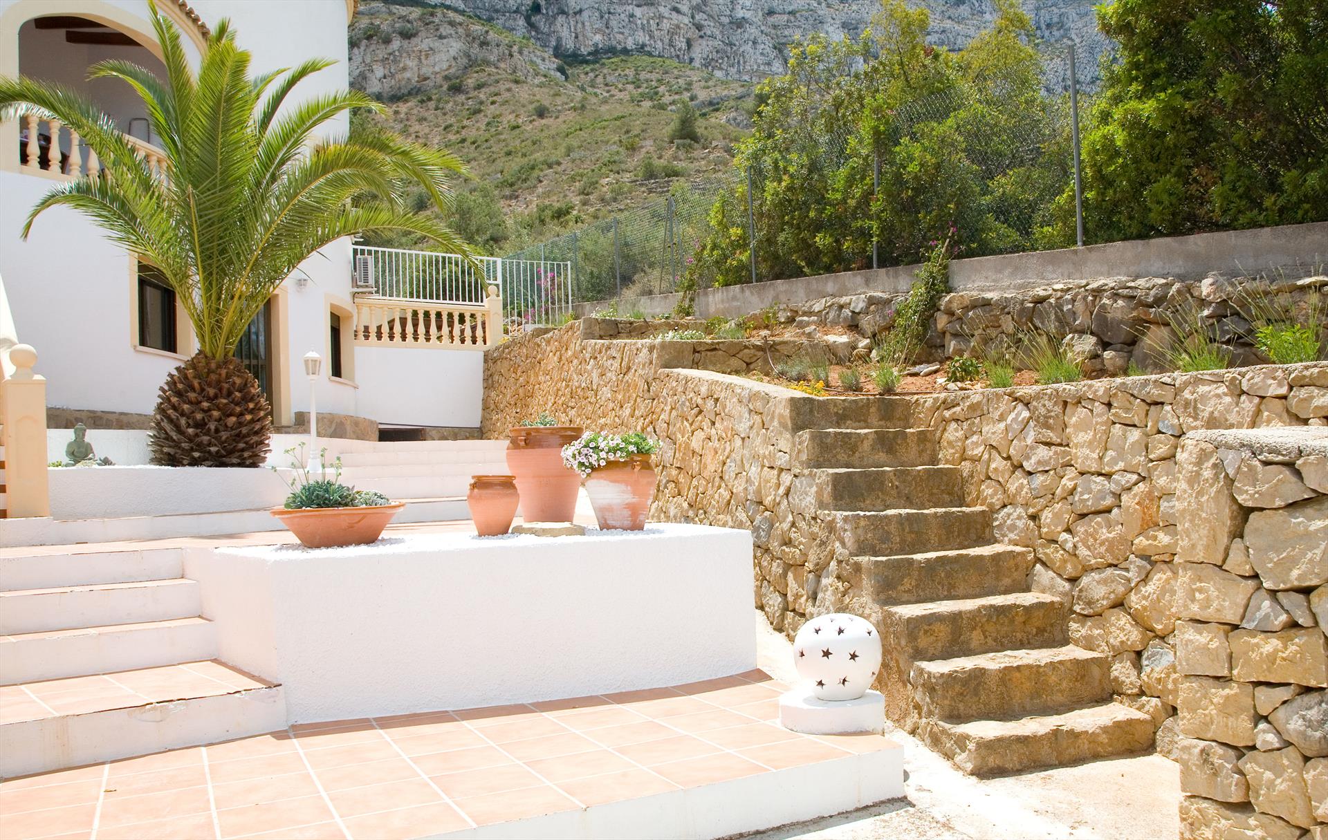Schöne und freundliche Villa mit privatem Pool in Denia, Costa Blanca, Spanien, für 8 Personen. Das Haus befindet sich in einer Wohngegend in den Bergen und ist 4 km vom Strand La Marineta Cassiana entfernt.