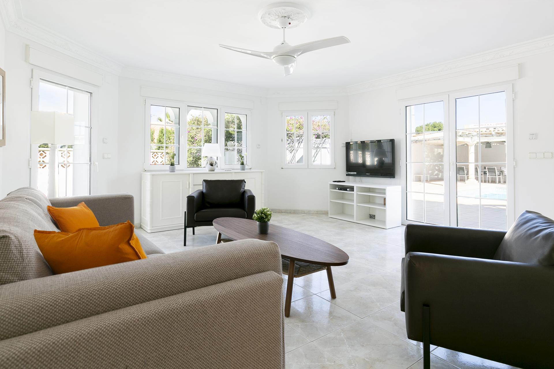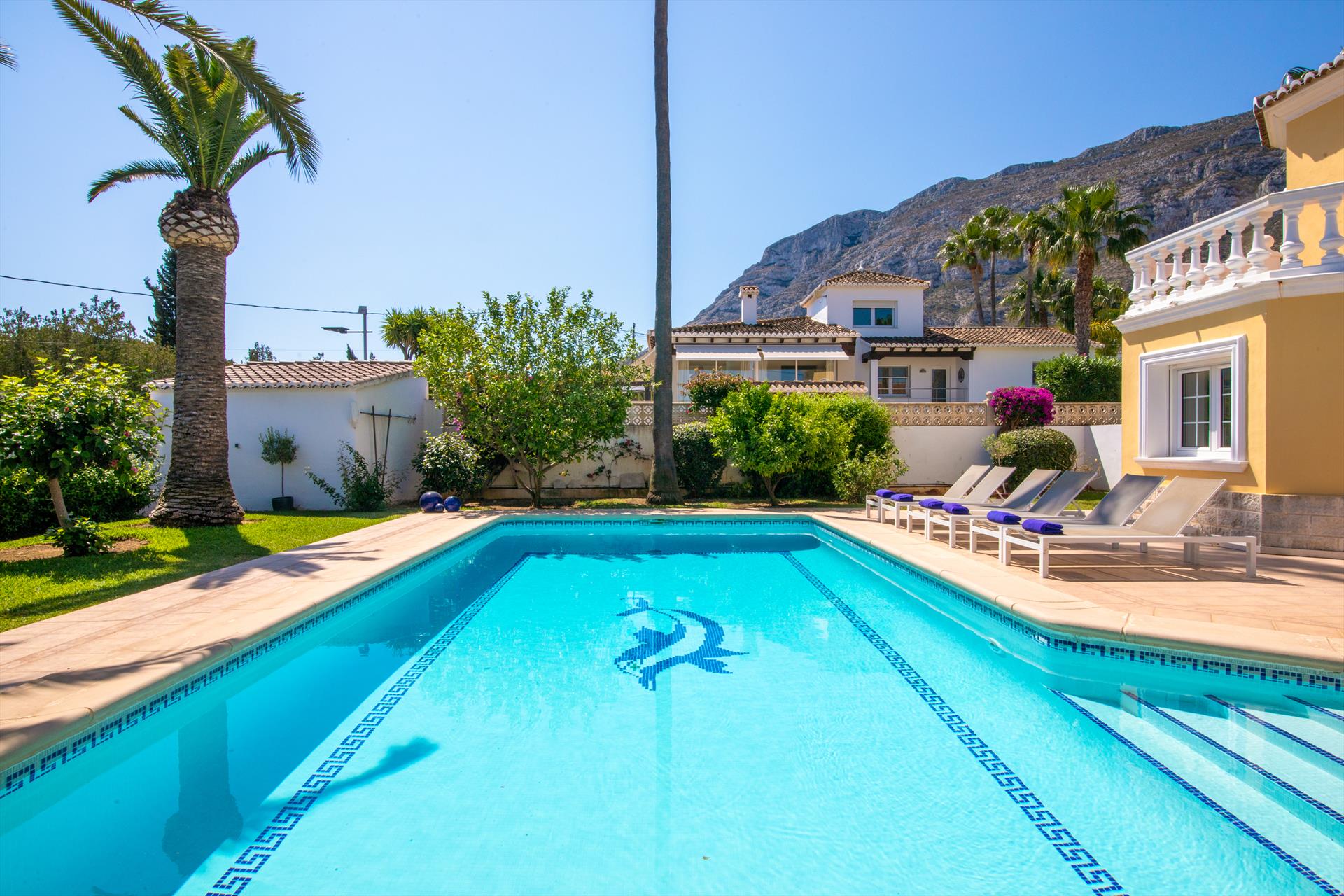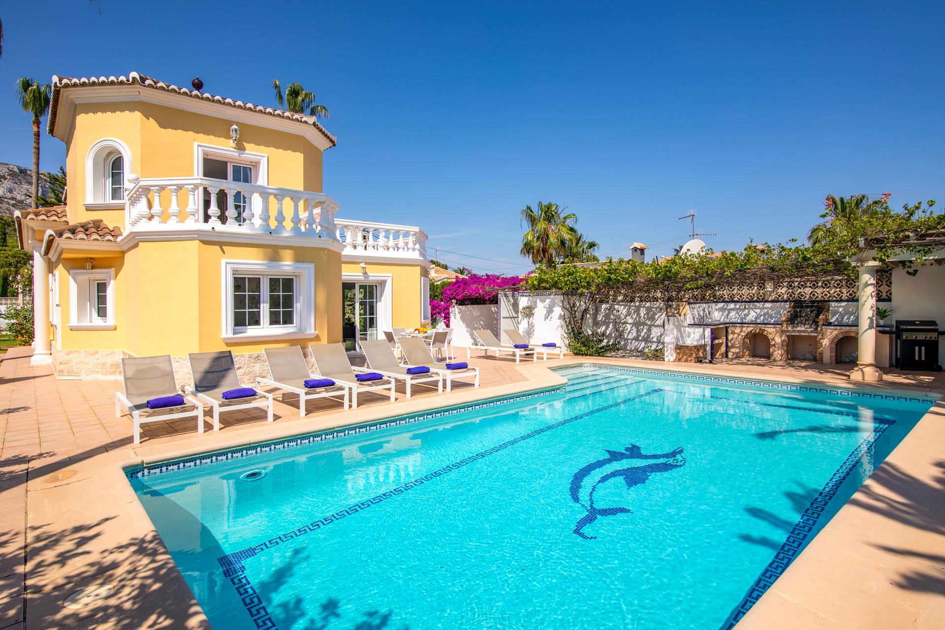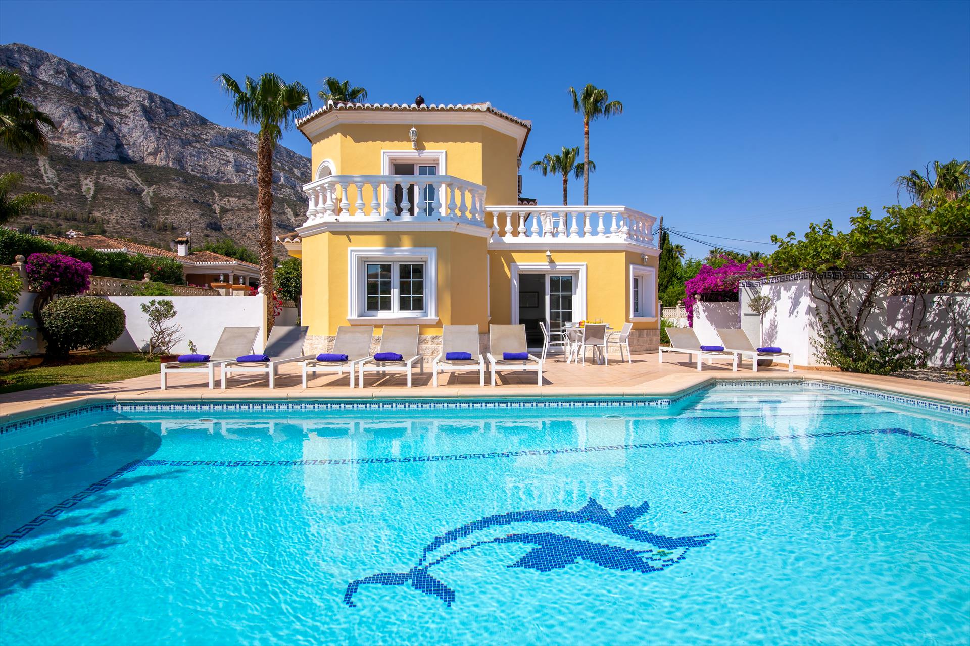 Komfortable Villa in Denia, Costa Blanca, Spanien mit privatem Pool für 8 Personen. Das Haus befindet sich in einer hügeligen und urbanen Gegend, 2 km vom Strand La Marineta und 3 km vom Zentrum von Denia entfernt.