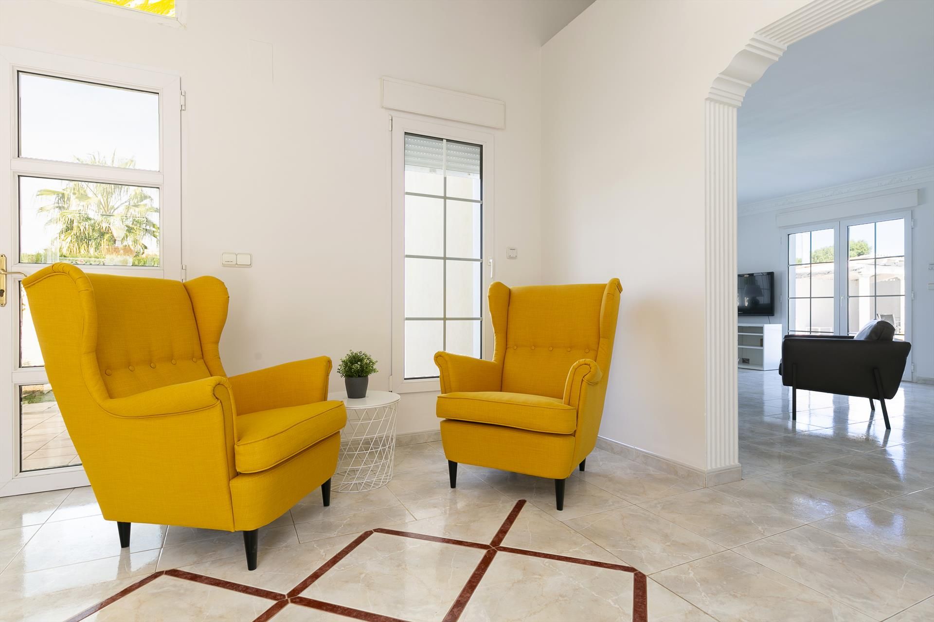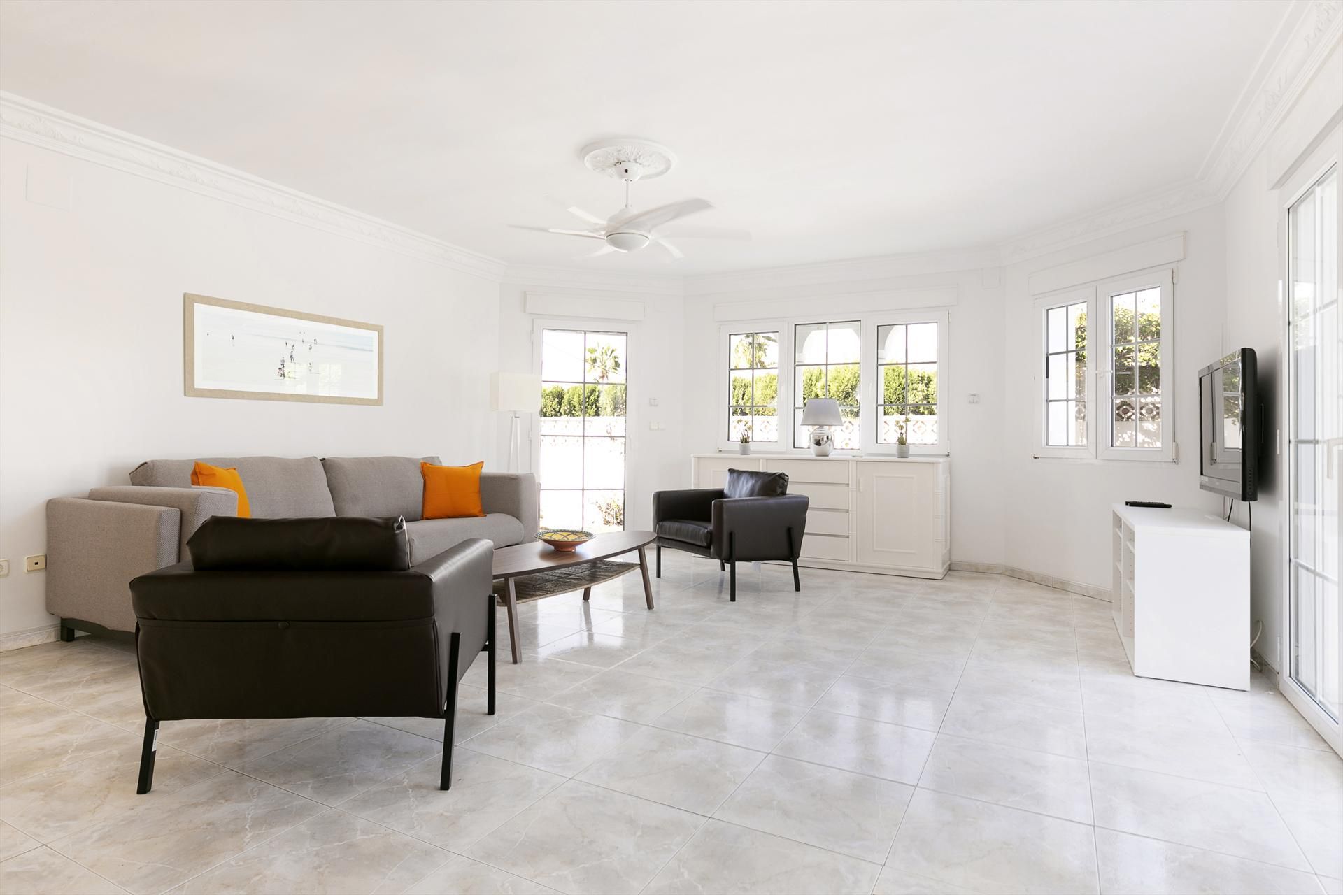 Die Villa verfügt über 4 Schlafzimmer und 4 Badezimmer, verteilt auf 2 Ebenen. Die Unterkunft bietet Privatsphäre, einen wunderbaren Garten mit Rasen, Kies und Bäumen, einen herrlichen Pool und eine fantastische Aussicht auf die Berge. Komfort und die Nähe zum Strand, Einkaufsmöglichkeiten, sportlichen Aktivitäten, Unterhaltungsmöglichkeiten und Ausgehmöglichkeiten machen diese Villa zu einem idealen Ort, um Ihren Urlaub in Spanien mit Familie, Freunden und sogar Ihren Haustieren zu verbringen.