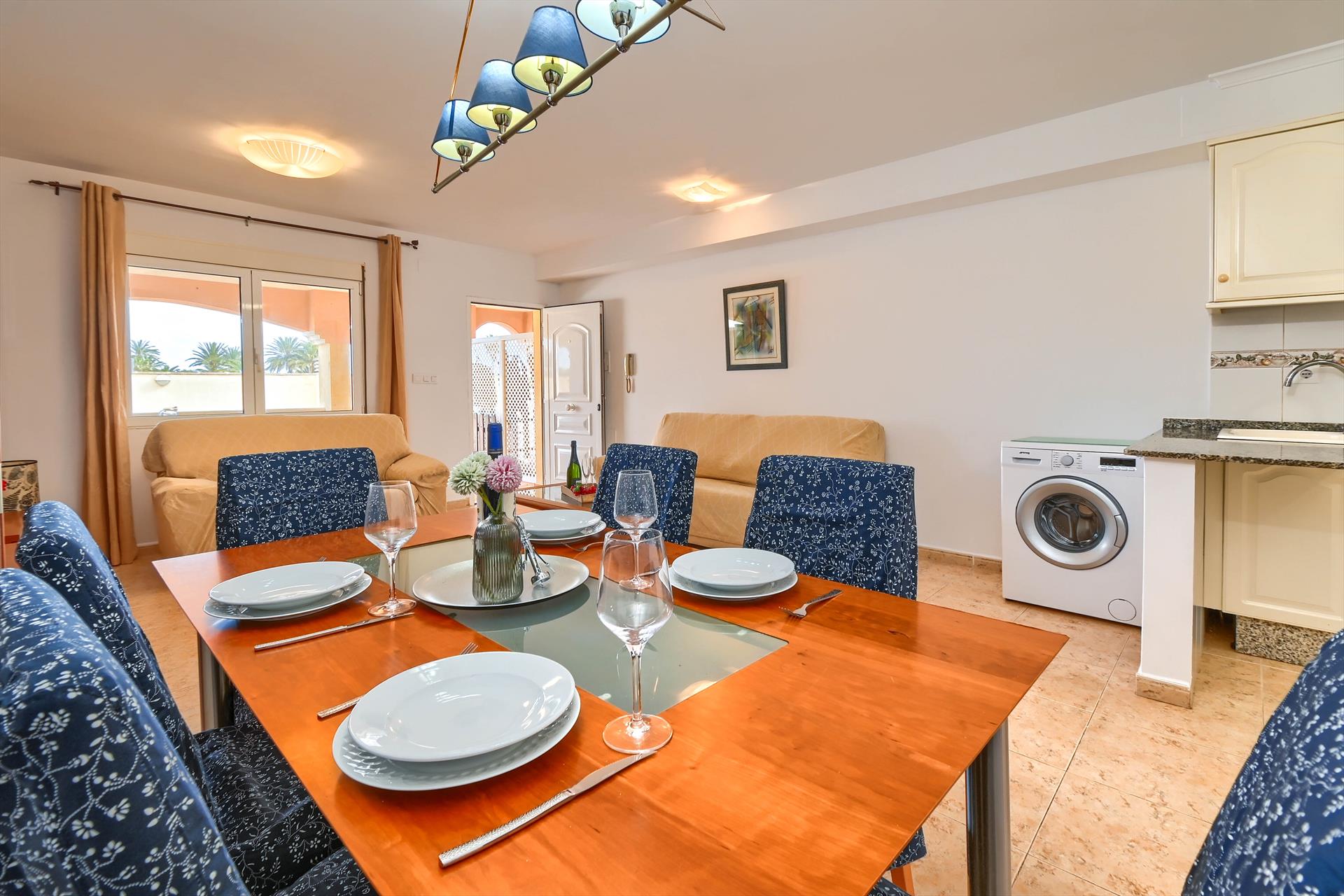 Schöne und klassische Wohnung in Els Poblets, Costa Blanca, Spanien, mit Gemeinschaftspool für 4 Personen. Die Wohnung befindet sich in einem Ferienkomplex mit Bar und Restaurant, in einem Wohngebiet am Strand, 200 m vom Playa de la Almadraba Strand und 0,2 km vom Mediterraneo entfernt.