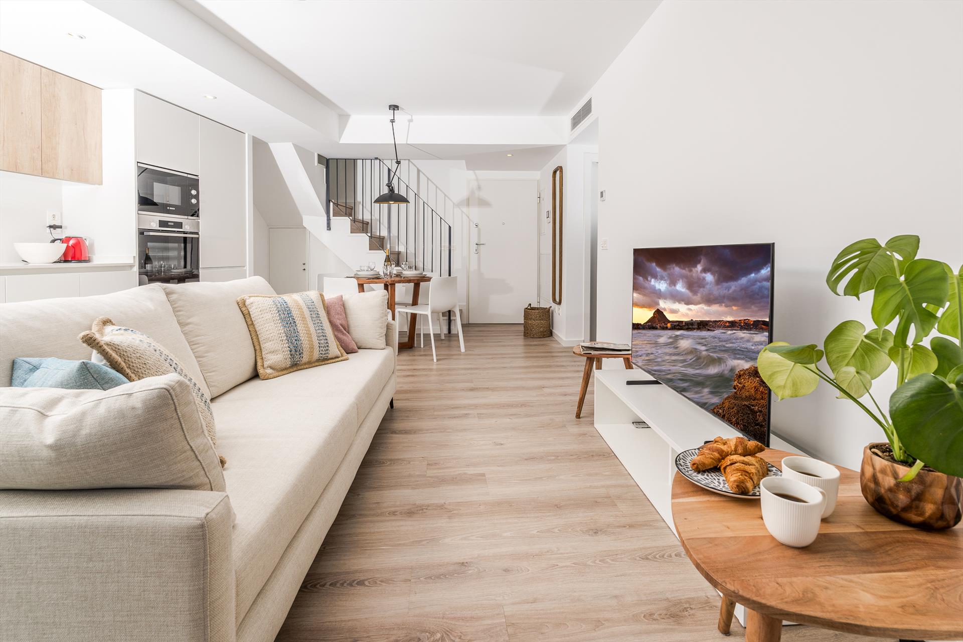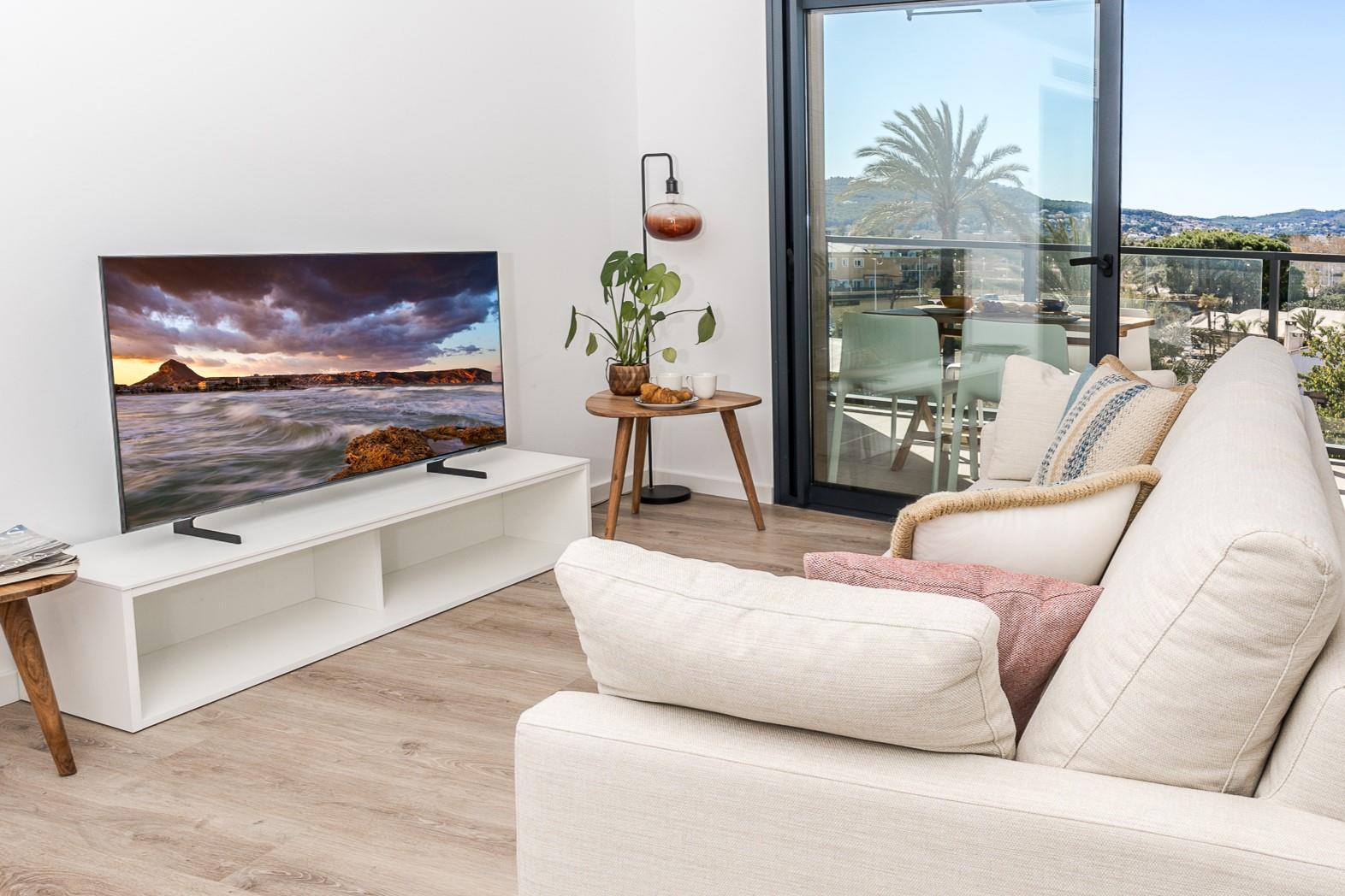 • Wohnzimmer mit Klimaanlage, Fernseher und Deckenventilator