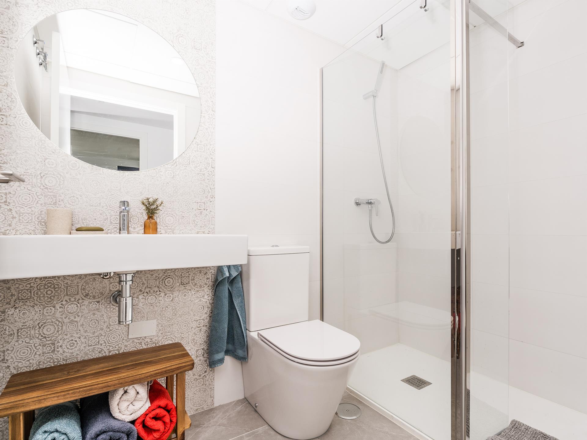 • Eigenes Badezimmer mit Einzelwaschbecken, Dusche, Toilette und Haartrockner