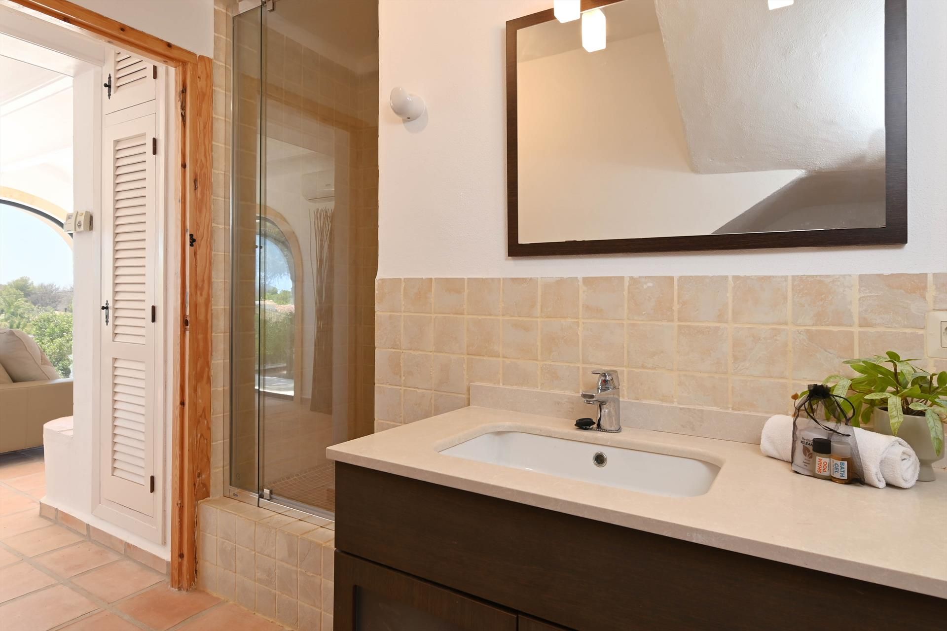 • 2 Schlafzimmer mit Klimaanlage, jeweils mit einem Queensize-Bett (200 x 160 cm) und eigenem Bad