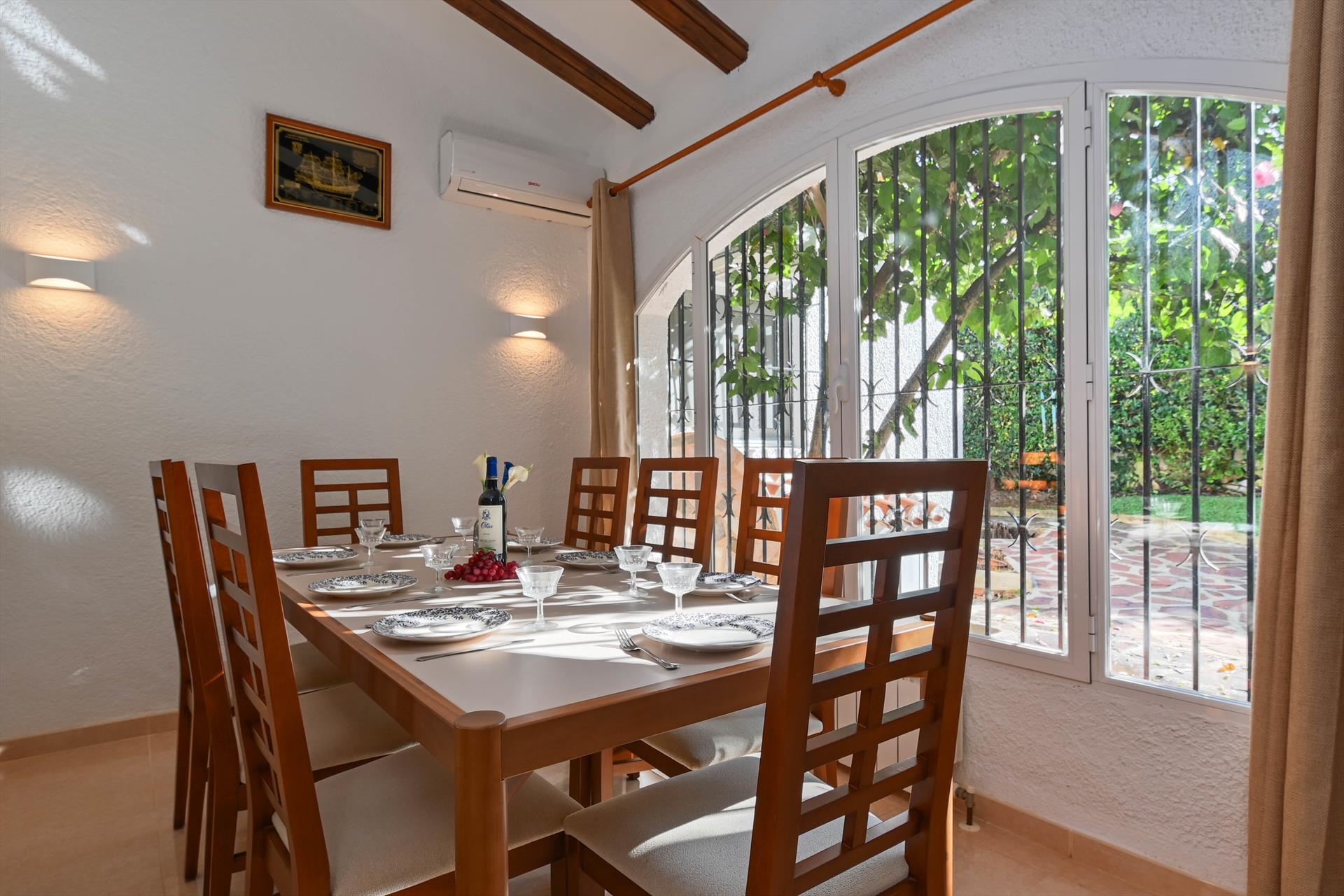 Das Haus hat 4 Schlafzimmer und 2 Badezimmer. Die Unterkunft bietet Privatsphäre, einen schönen Garten mit Rasen und Bäumen und einen schönen Pool. Die Bequemlichkeit und die Nähe vom Strand, Einkaufsmöglichkeiten, Sportaktivitäten, Orten zum Ausgehen, Sehenswürdigkeiten und Kultur machen dies zu einer geeigneten Villa um Ihre Ferien in Spanien zu verbringen mit Familie oder Freunden und sogar Ihren Haustieren.