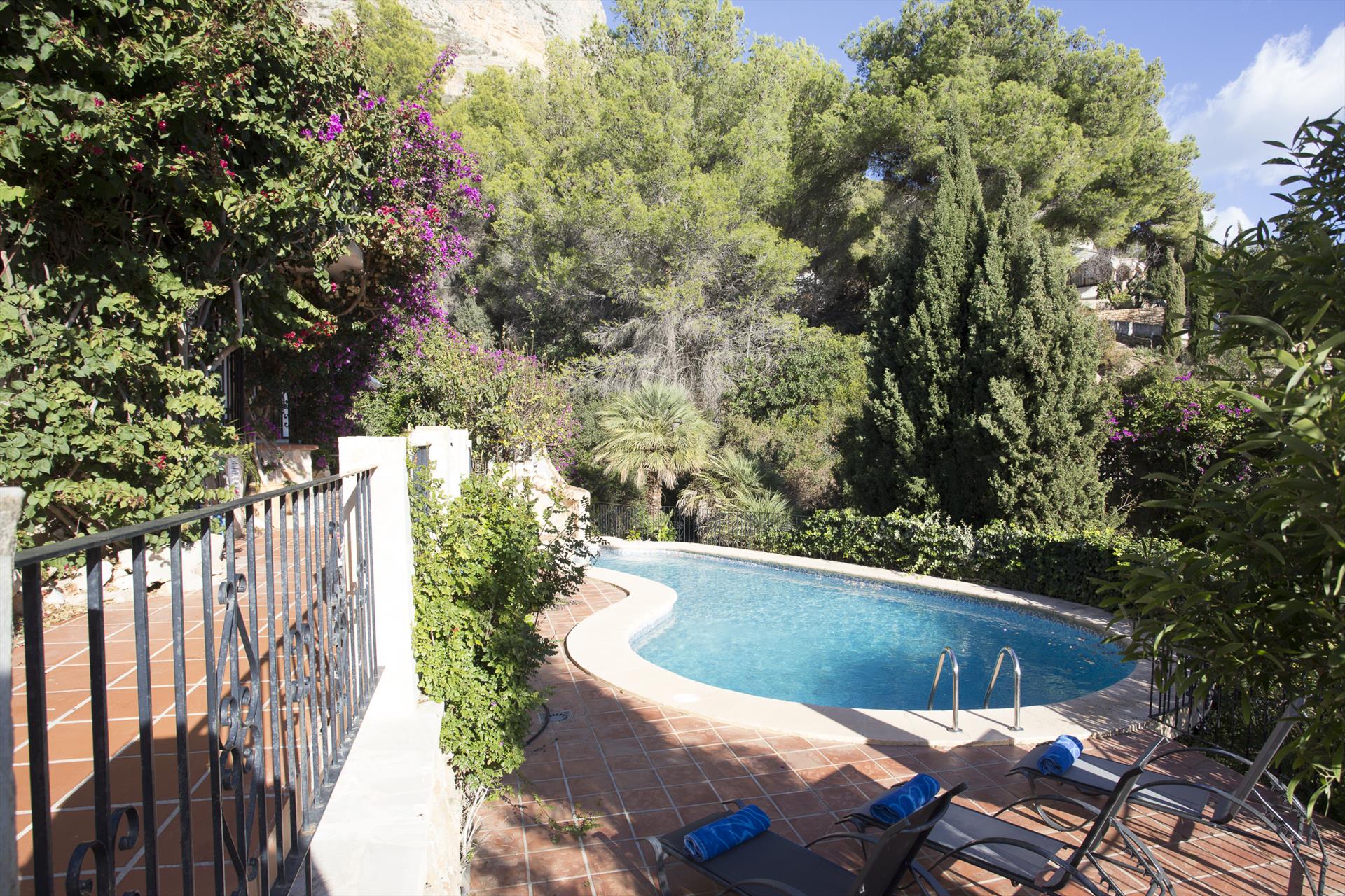 Schöne und komfortable Villa mit privatem Pool in Jávea, Costa Blanca, Spanien für 4 Personen. Das Haus befindet sich in einem bewaldeten und Wohngebiet in der Nähe des Strandes.