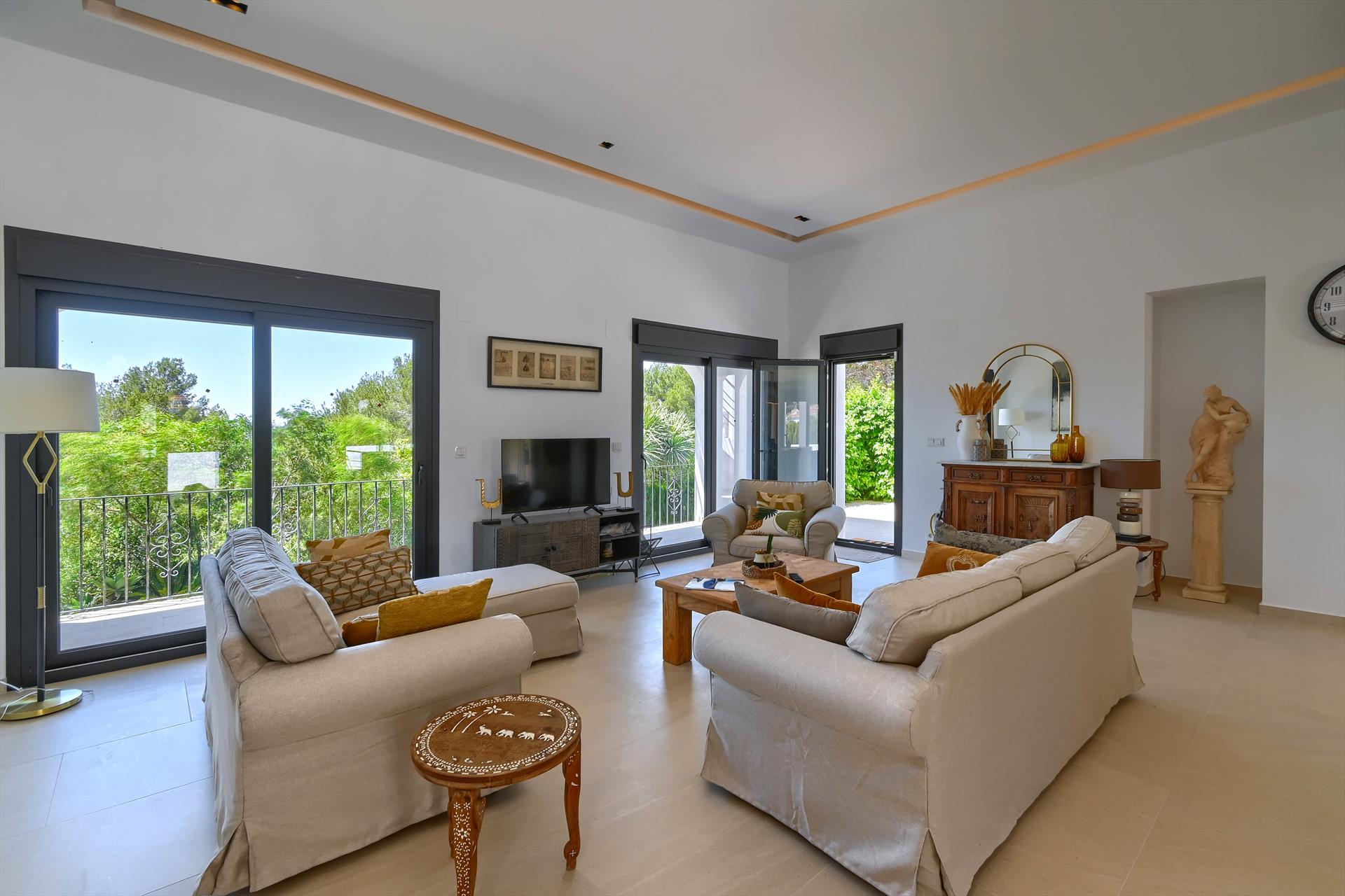 Die Villa verfügt über 5 Schlafzimmer und 5 Badezimmer, verteilt auf 2 Ebenen. Die Unterkunft bietet viel Privatsphäre, einen schönen Rasen mit Kies und Bäumen, einen herrlichen Pool sowie beeindruckende Ausblicke auf das Meer und die Berge. Der Komfort und die Nähe zum Strand, zu sportlichen Aktivitäten, Unterhaltungsmöglichkeiten, Sehenswürdigkeiten und kulturellen Angeboten machen diese Villa zum idealen Ort, um Ihren Urlaub in Spanien mit Familie oder Freunden zu verbringen.