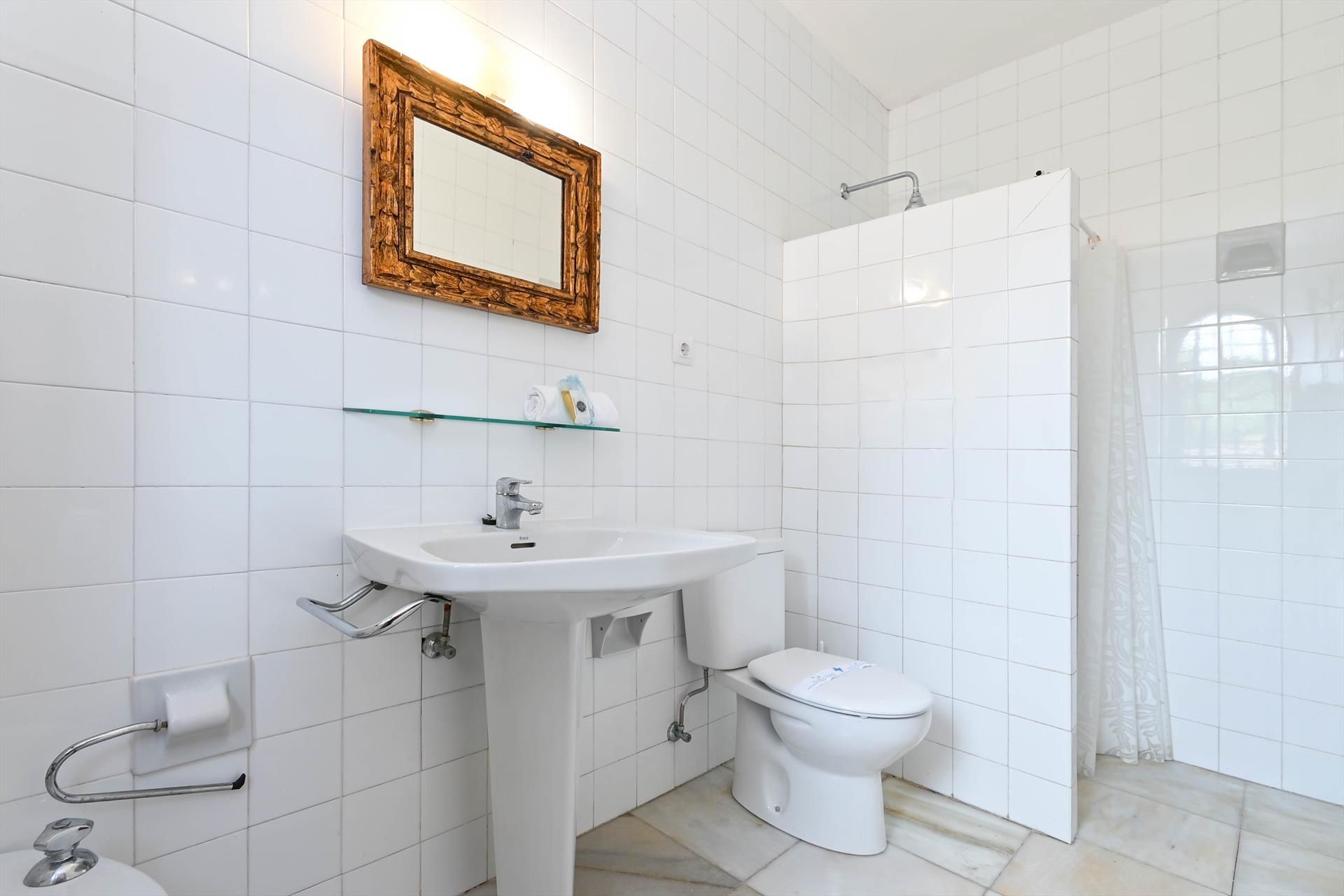 • 2 Badezimmer, jeweils mit Einzelwaschbecken, Dusche und Toilette