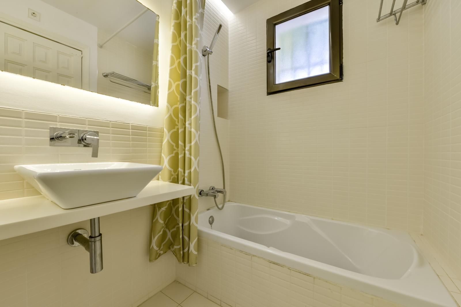• Badezimmer mit Einzelwaschbecken, Badewanne-Dusch-Kombination und WC