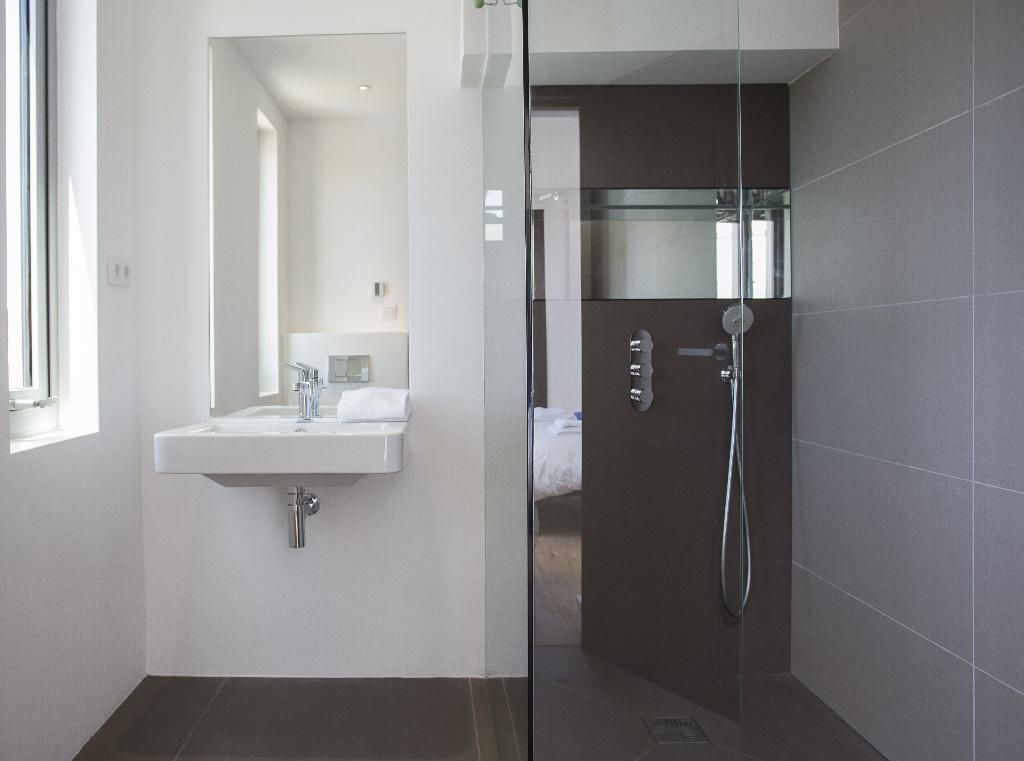 • Badezimmer mit Einzelwaschbecken, Dusche und Toilette