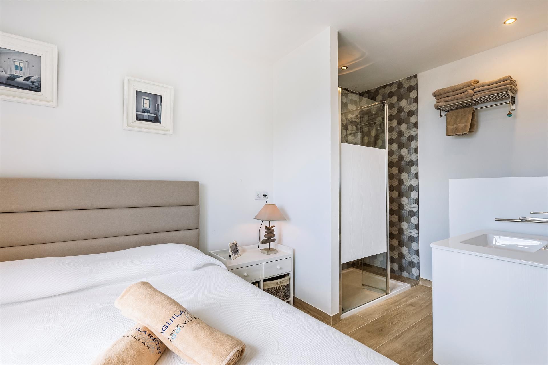 • 2 klimatisierte Schlafzimmer, jedes mit Doppelbett und en-suite Badezimmer