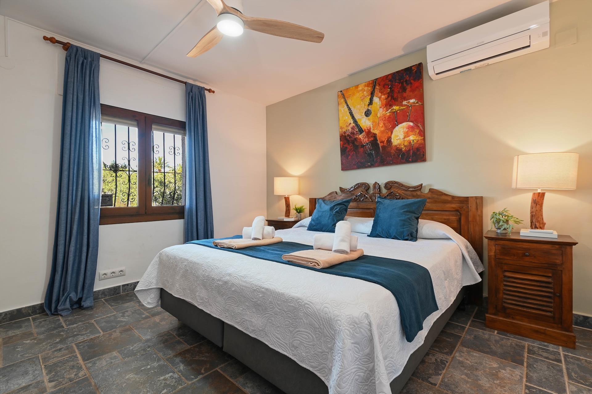 • Schlafzimmer mit Klimaanlage und einem Queen-Size-Bett (Maße 200 x 160 cm)