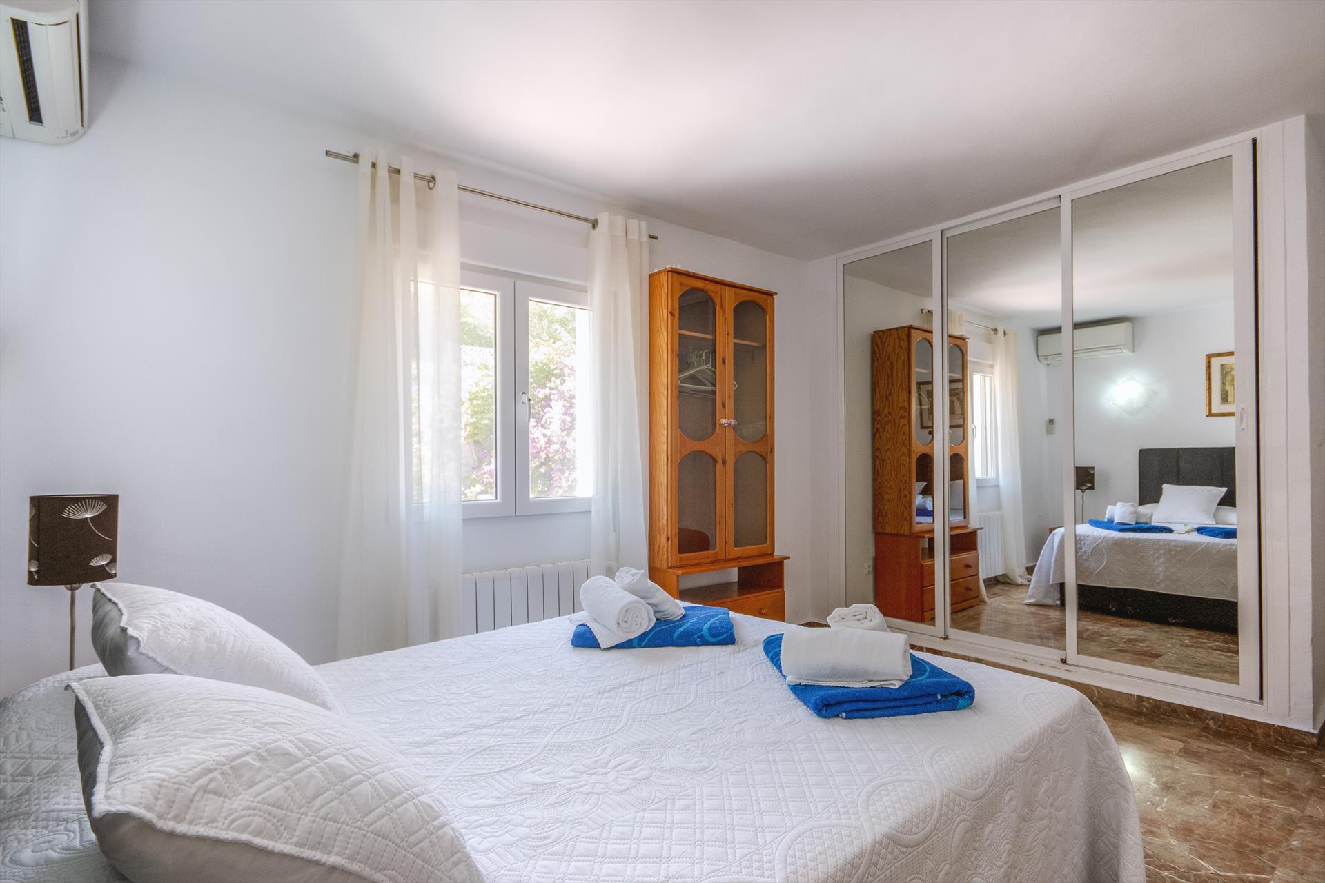 • Schlafzimmer mit Klimaanlage und Doppelbett, Fernseher, DVD-Player und Badezimmer en-suite