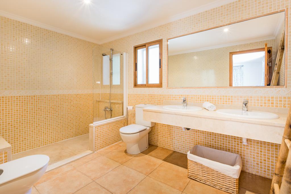 • ensuite Badezimmer mit Doppelwaschbecken, Dusche, Bidet und Toilette