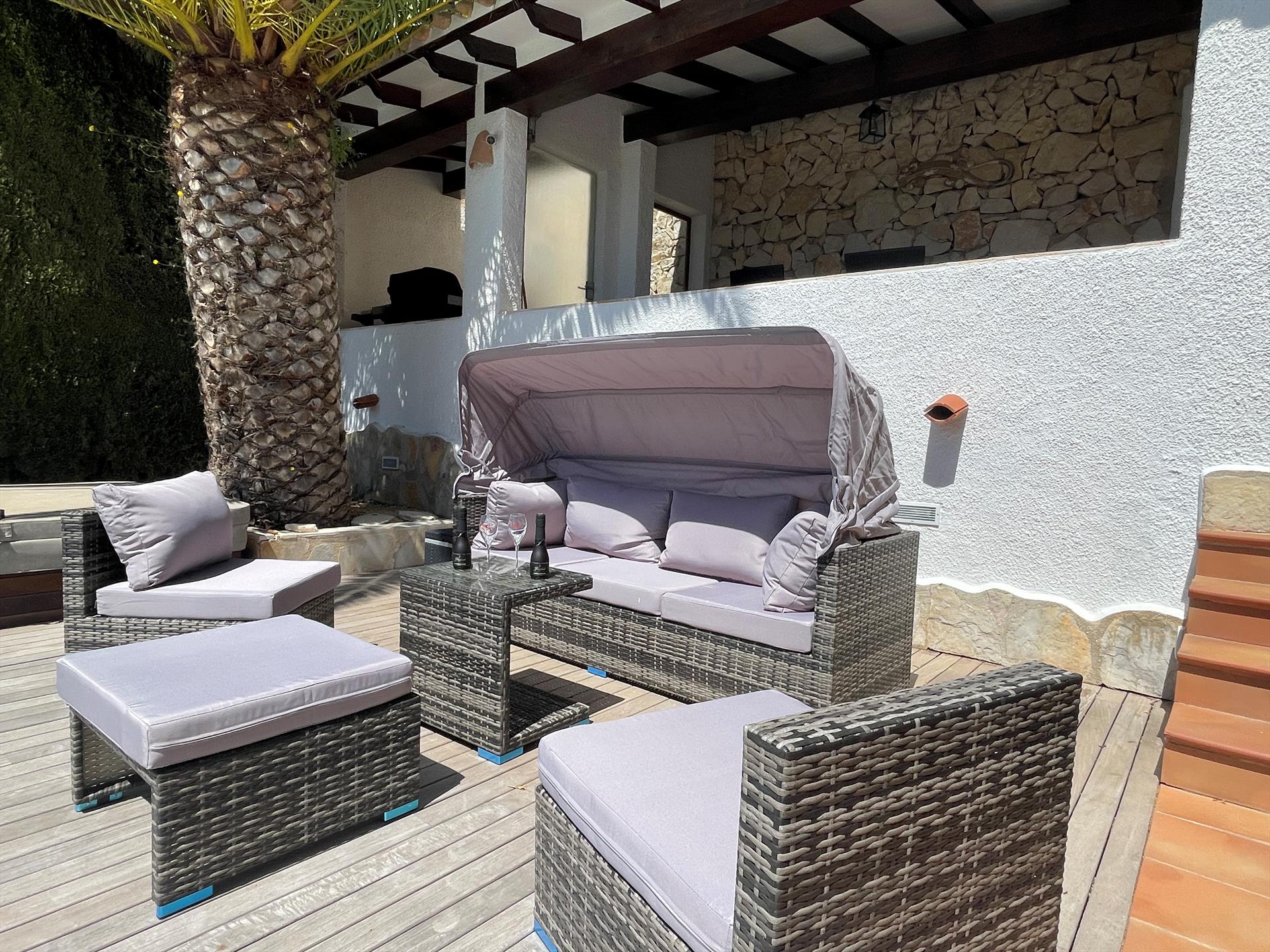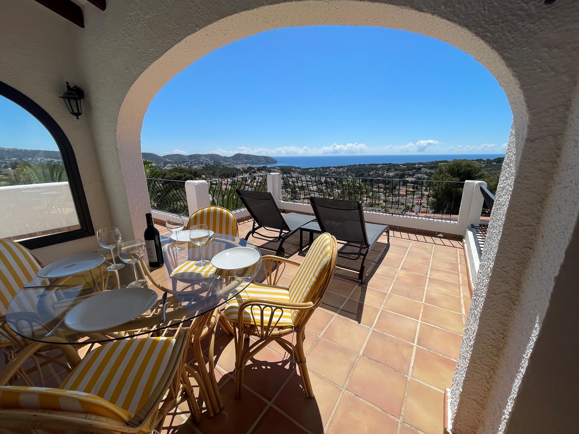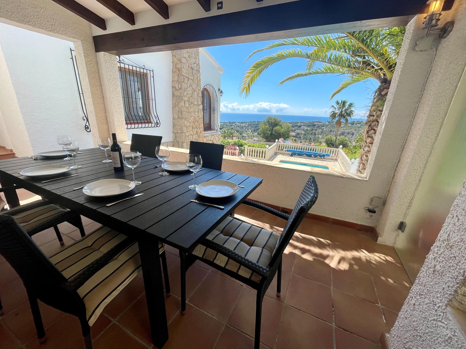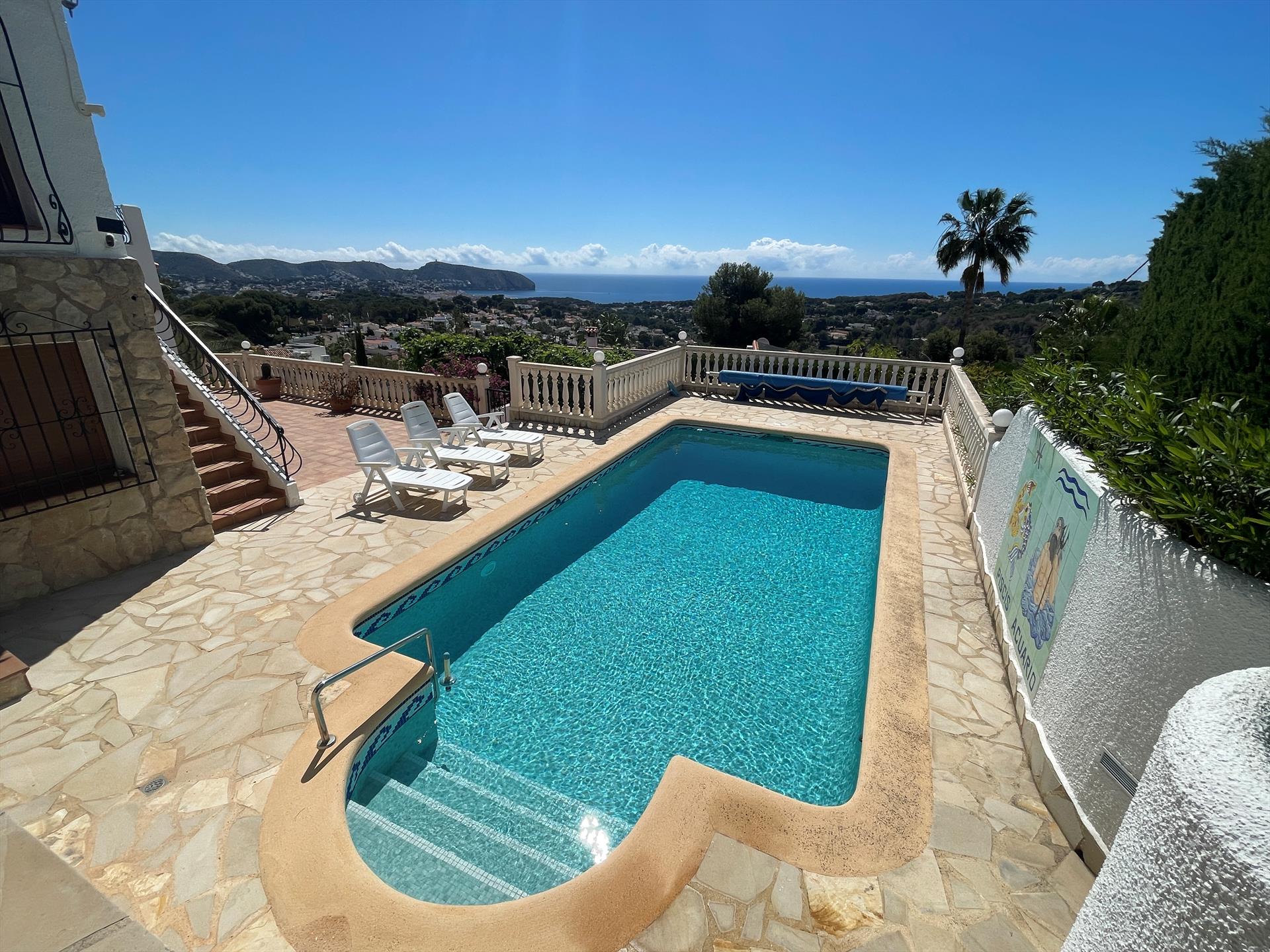 Wundervolle und klassische Villa in Moraira, Costa Blanca, Spanien, mit privatem Pool für 6 Personen. Das Haus befindet sich in einem urbanen Strandgebiet und ist 3 km vom Strand Moraira entfernt.